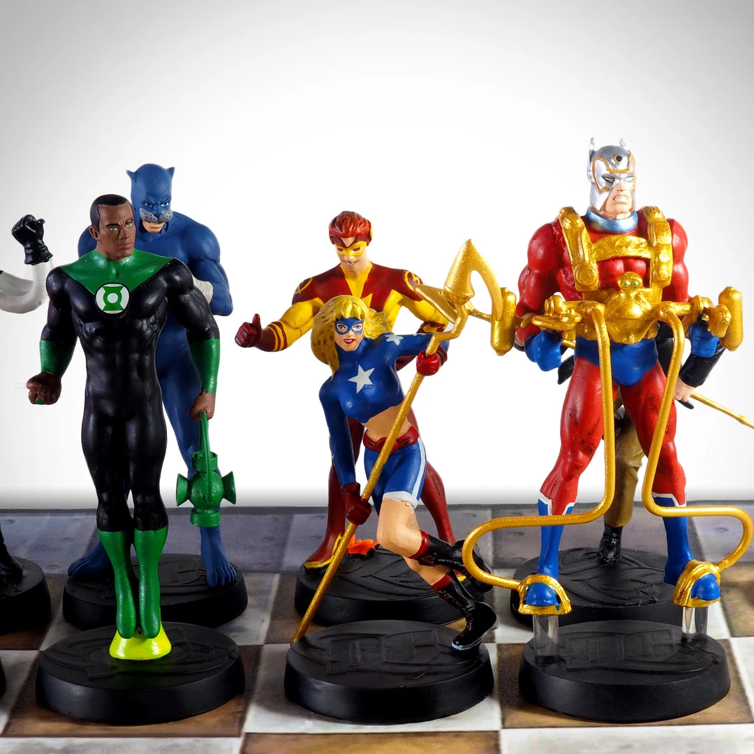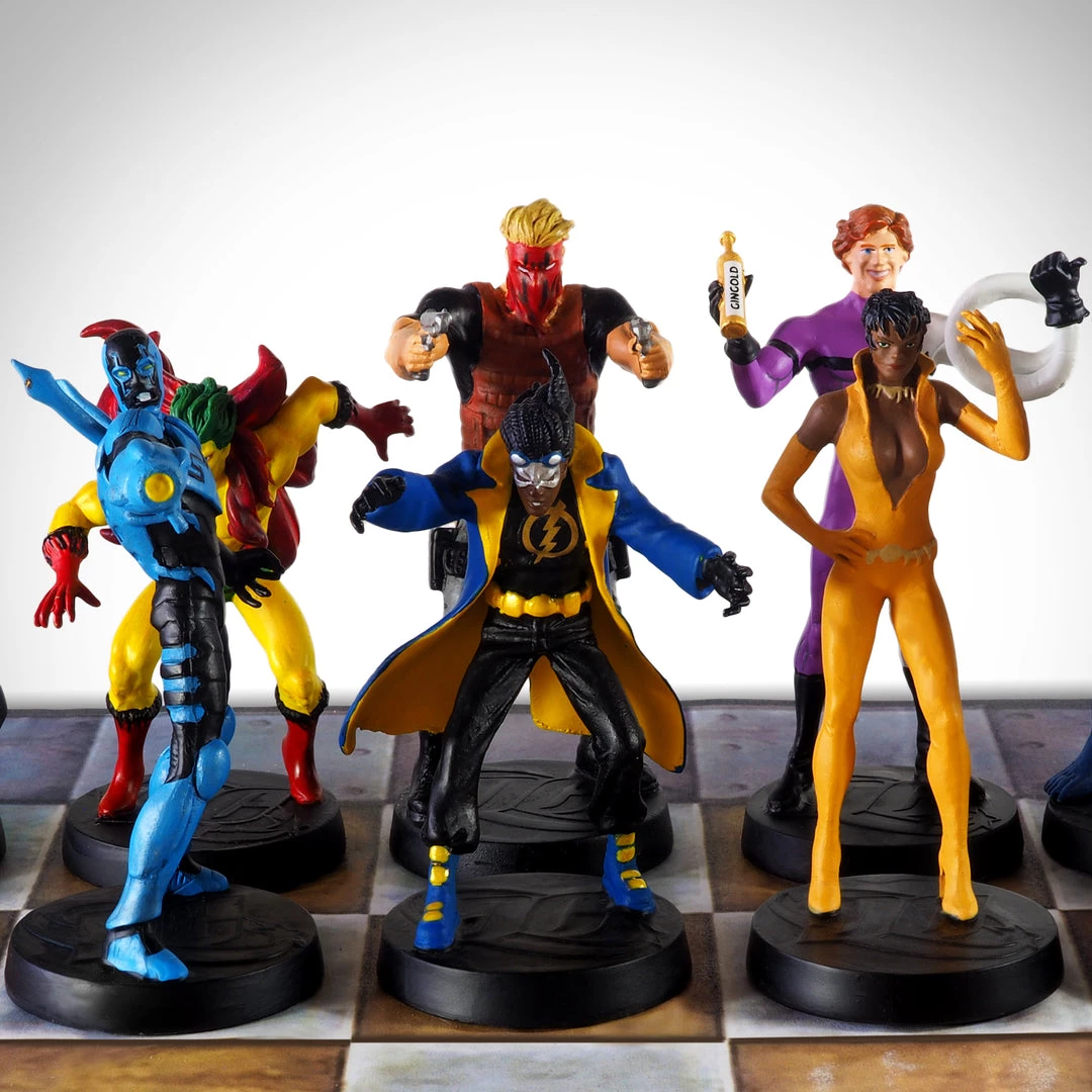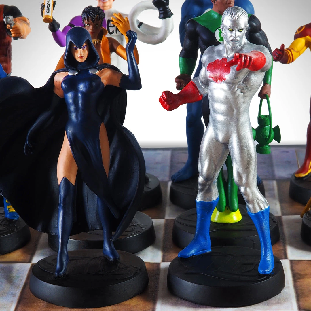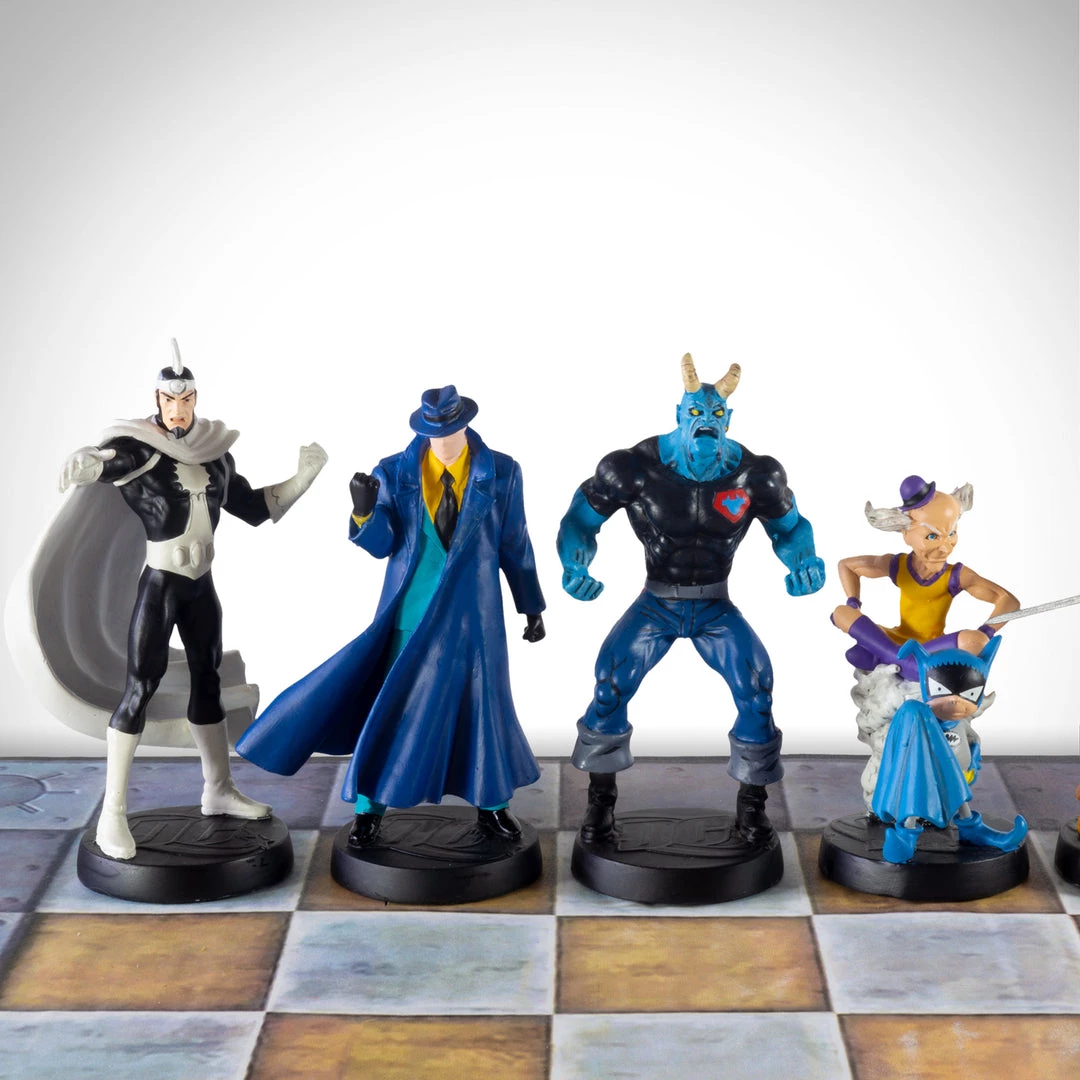 This one of a kind vintage chess set is the crown jewel of any Gaming or DC enthusiast’s collection. It’s a 1 of 1 limited edition. Dating back from 2005 to 2009, -each DC stamped Eagle Moss Classic Figure has been brought to life as 3.5”- 4″ tall. Each lead figure is individually numbered and has been hand painted in impeccable detail recreating accurately your favorite superheroes. They are ready for battle on the officially licensed DC chessboard.