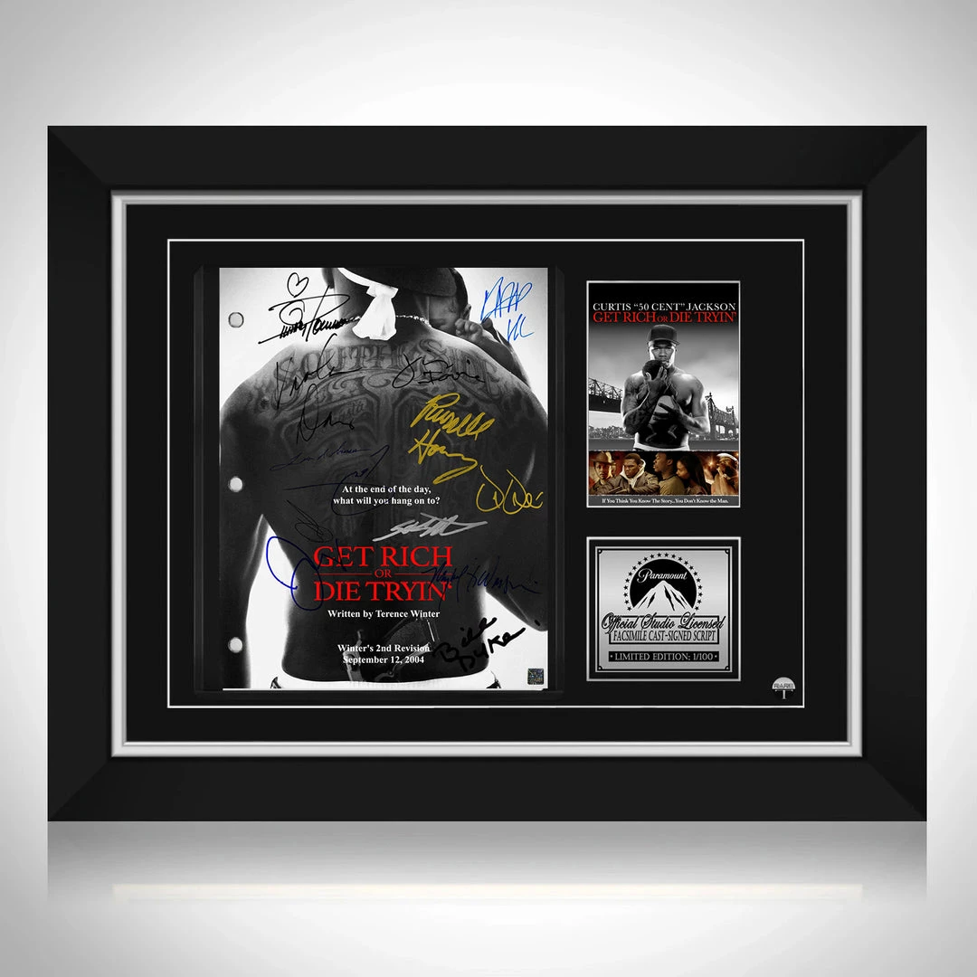 Pay homage to Get rich or die tryin’ , with this Paramount Pictures fully licensed facsimile of the official signed movie script, originally signed by actors Jimmy Lovine, 50 Cent, Terence Howard, Joy Bryant, Bill Duke, Adewale Akinnuoye-Agbaje, Omar Benson Miller, Viola Davis, Quincy Jones, Russell Hornsby, Leon & Mykelti Williamson , of which is strictly limited to 100 units Worldwide and has been approved and numbered accordingly.