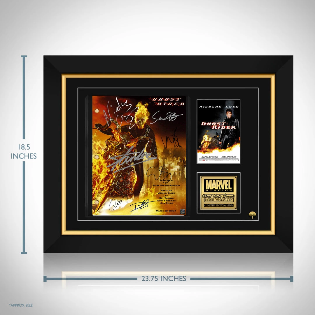Pay homage to Ghost Rider , with this Columbia Pictures fully licensed facsimile of the official signed movie script, originally signed by actors Nicolas Cage, Eva Mendes, Wes Bentley, Sam Elliott, Donal Logue, Peter Fonda, Stan Lee, Wes Bentley , of which is strictly limited to 100 units Worldwide and has been approved and numbered accordingly.