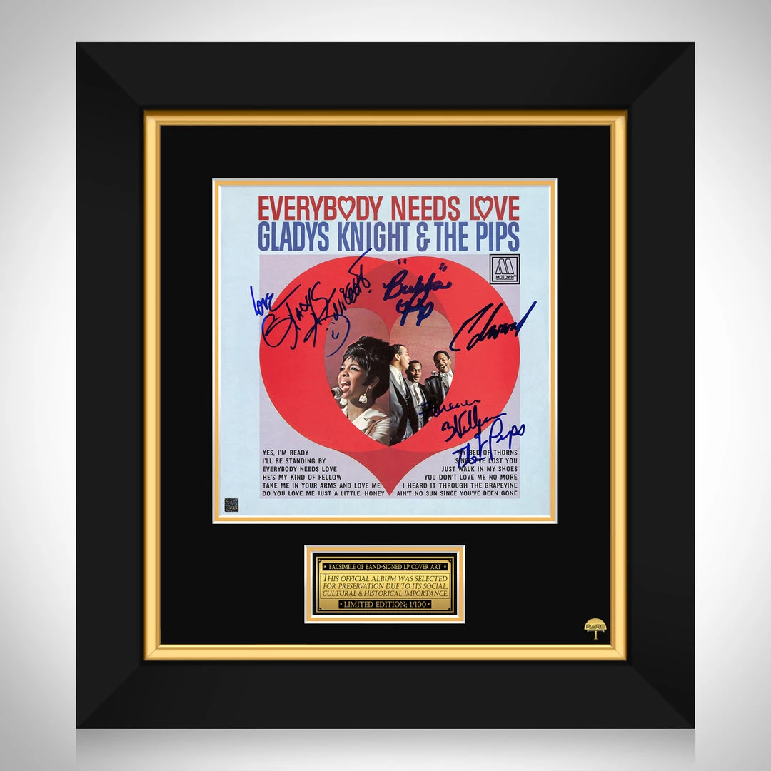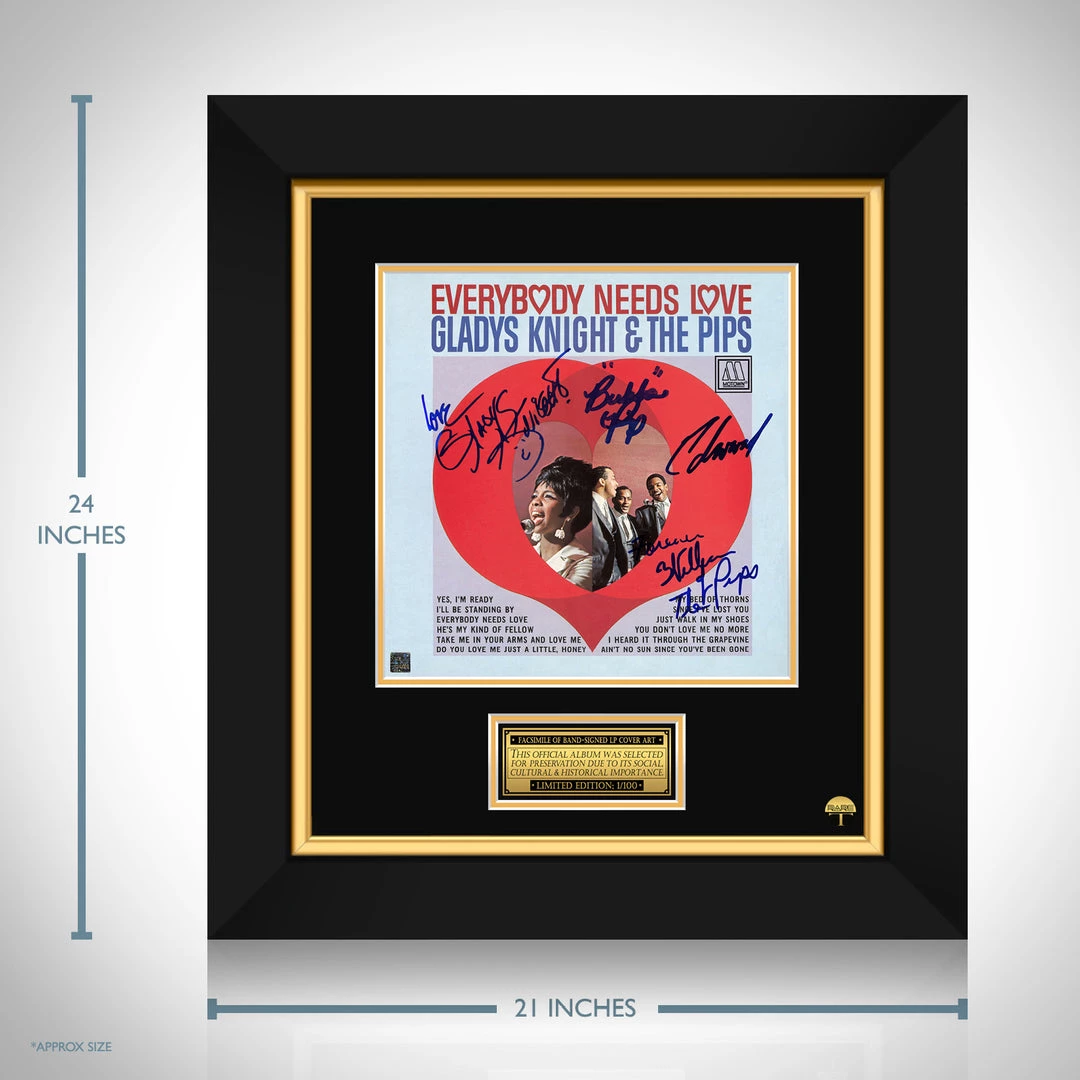 Pay homage to one of the most iconic American R&B/soul/funk family music group of all time, Gladys Knight and the pips , with this gallery-framed, officially licensed, limited edition facsimile of the Hand-Signed Everybody needs love LP Cover originally signed by Gladys Knight, Merald “Bubba” Knight, William Guest & Edward Patten , of which is strictly limited to 100 units Worldwide, and has been approved and numbered accordingly.