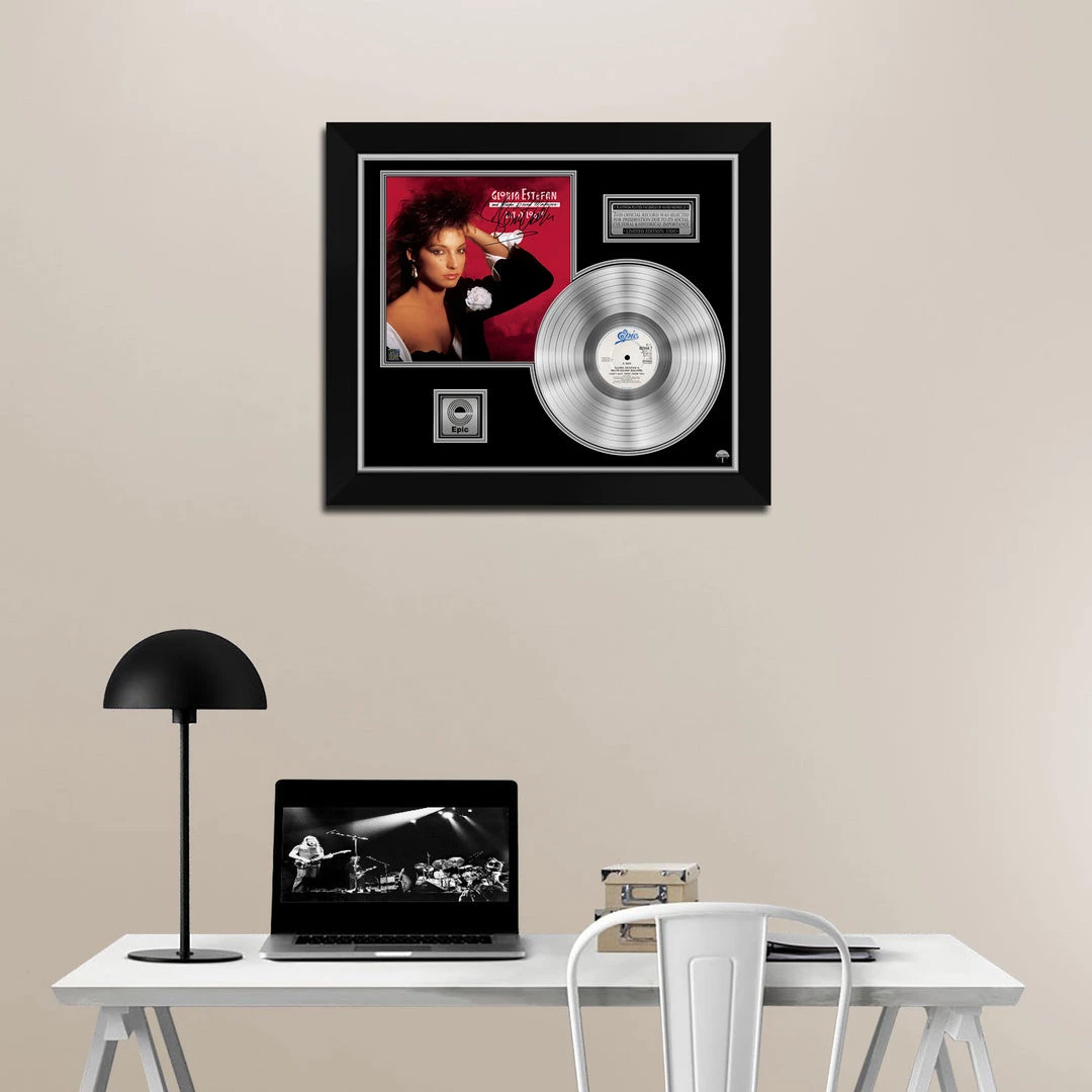 Æ’?? Collectible Gloria Estefan & Miami Sound Machine Facsimile Hand-Signed Platinum LP Custom Frame