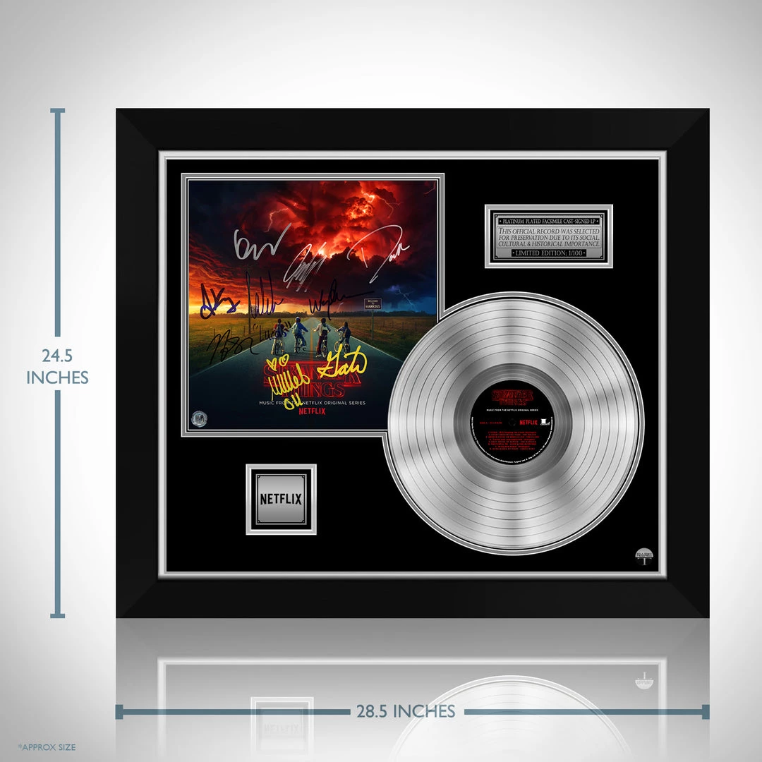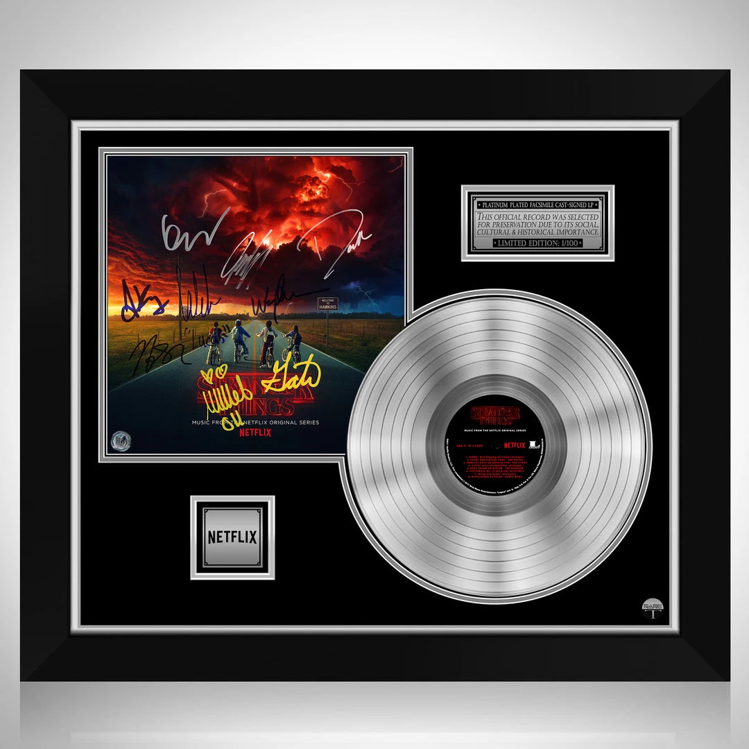 โ Collectible Stranger Things Facsimile Hand-Signed Platinum Plated LP Custom Frame