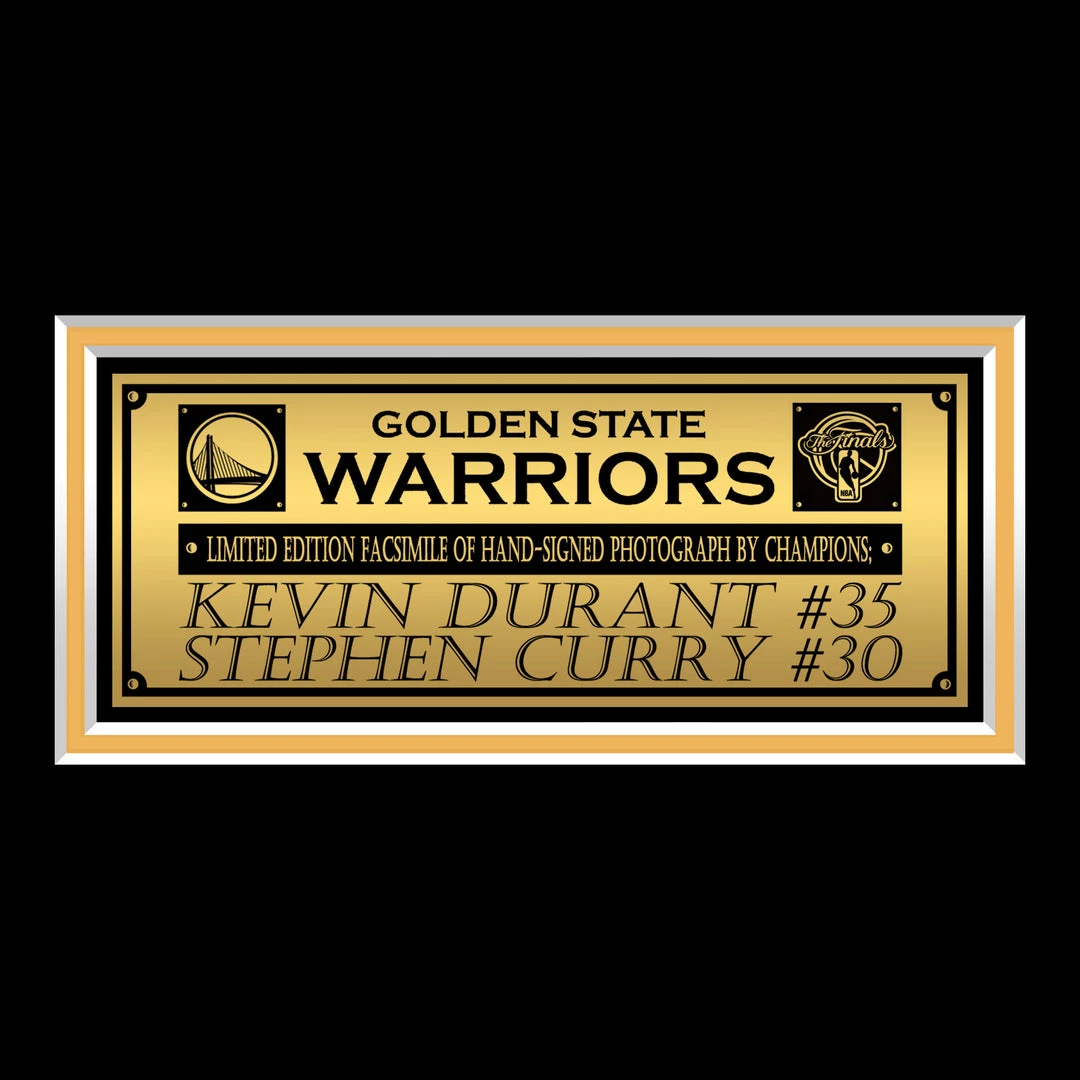Pay homage to Golden State Warriors , with this gallery-framed, officially licensed, limited edition facsimile of the Hand-Signed photo, originally signed by Kevin Durant & Stephen Curry, of which is strictly limited to 100 units Worldwide, and has been approved and numbered accordingly.