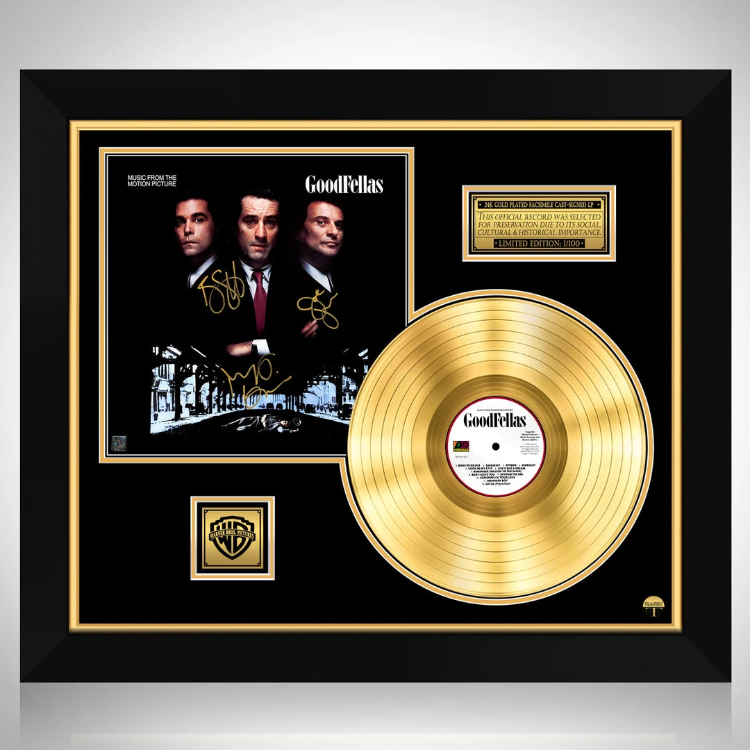 Æ’?? Collectible Goodfellas Motion Picture Soundtrack facsimile of hand-signed 24K Gold Plated LP + Photo Custom Frame