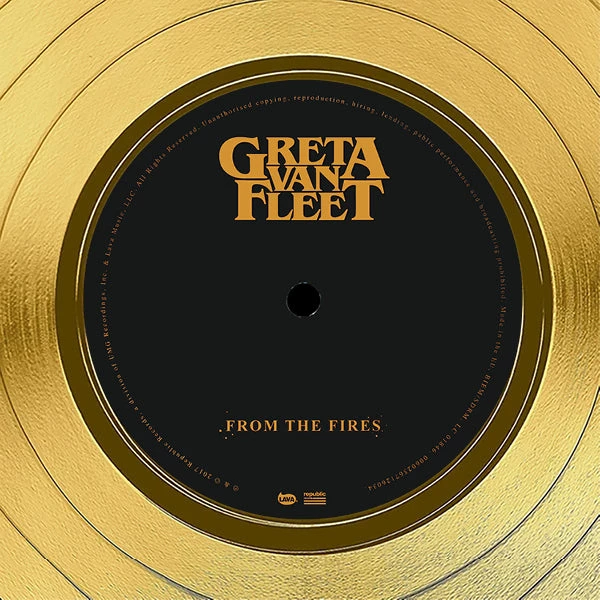 Pay homage to one of the most iconic American rock band of all time Greta Van Fleet , with this gallery-framed, authentic Republic Records fully licensed facsimile of the official Hand-Signed 24K Gold LP Record and LP Cover From the Fires Originally signed by Joshua Kiszka, Jacob Kiszka, Samuel Kiszka & Daniel Wagner , of which is strictly limited to 100 units Worldwide and has been approved and numbered accordingly.