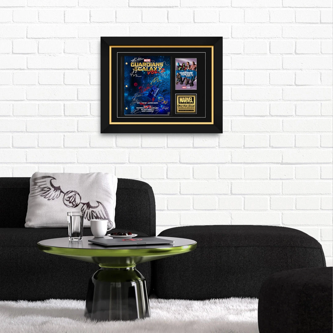 — Collector Grade Proprietary Exclusive VELVET TOUCH water/scratch resistant cover. — Collectible Facsimile of Original Hand-Signed Guardians of the Galaxy Vol. 2 movie Script Custom Frame.