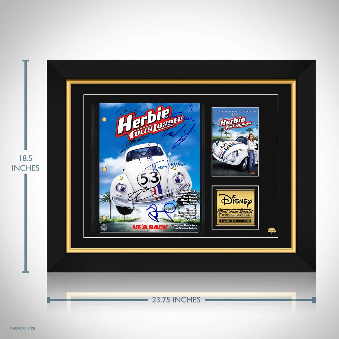 Pay homage to Herbie: Fully Loaded , with this Walt Disney Studios fully licensed facsimile of the official signed movie transcript, originally signed by actors Lindsay Lohan, Justin Long, Breckin Meyer, Matt Dillon, Michael Keaton, Thomas Lennon, Jeff Gordon & Jimmie Johnson , of which is strictly limited to 100 units Worldwide and has been approved and numbered accordingly.