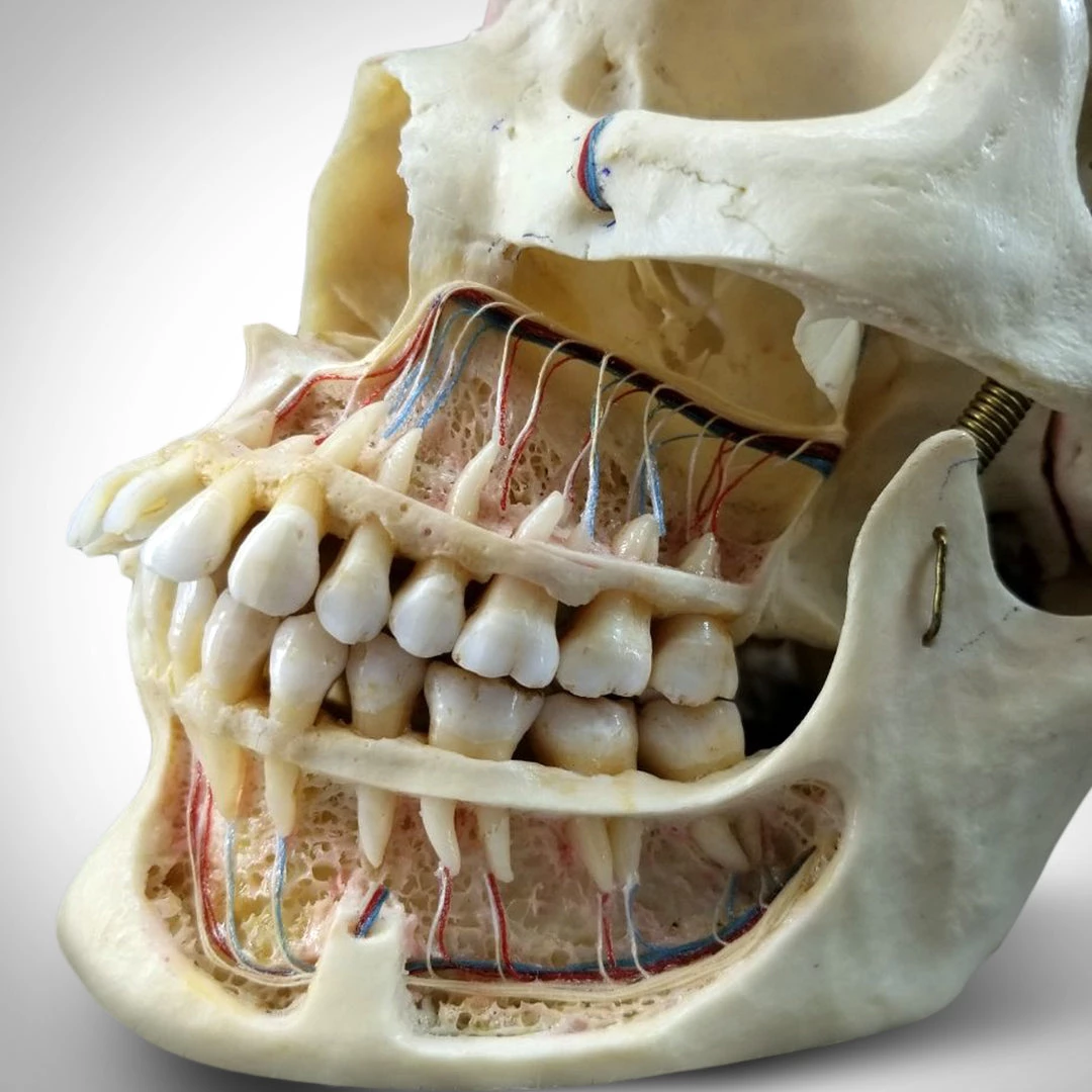 A “window” into the mandible has also been prepared, showcasing the root structure of human dentition and the veins and nerves that service our teeth.