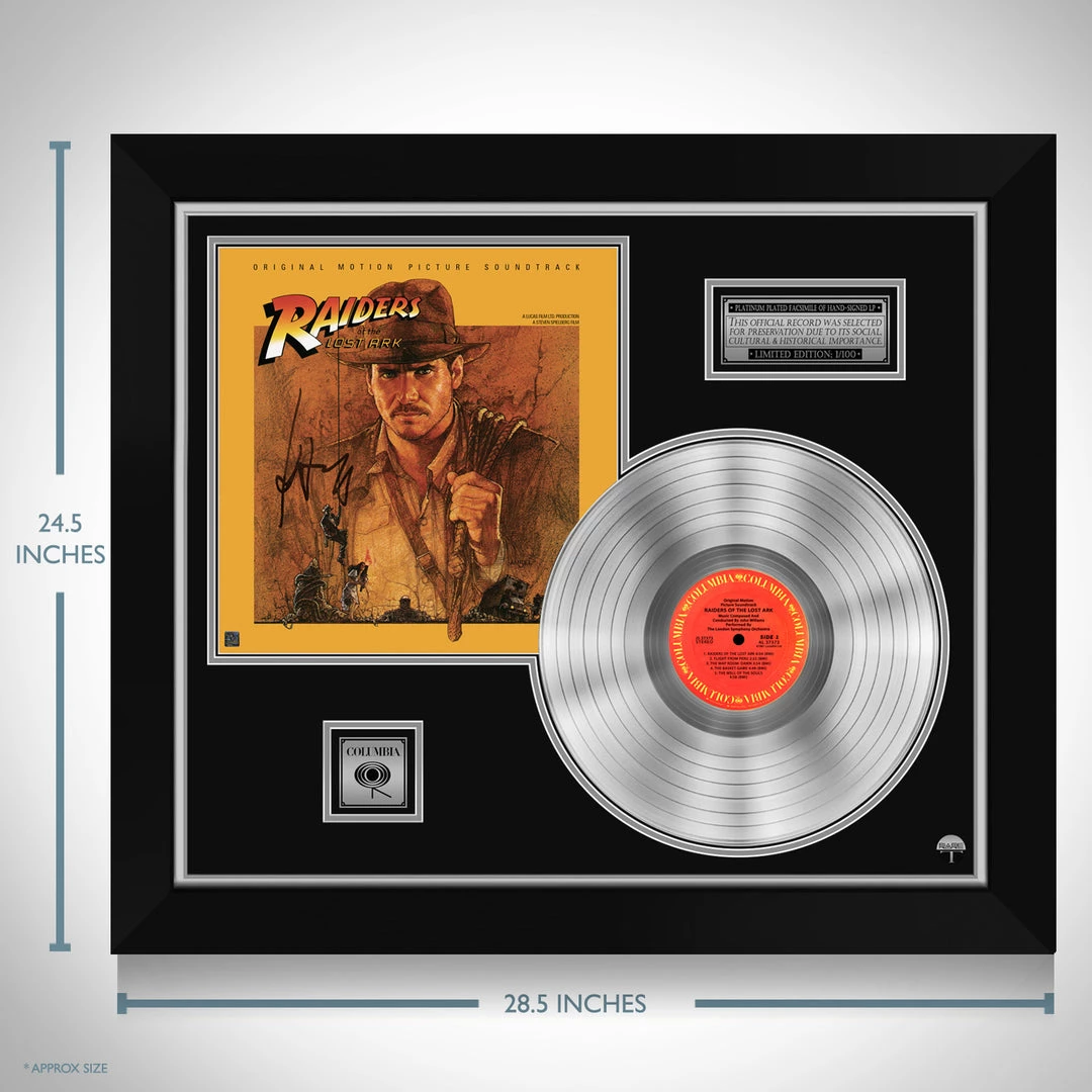Pay homage to one of the most iconic franchise of all time Indiana Jones , with this gallery-framed, authentic Columbia Records fully licensed facsimile of the official Hand-Signed Platinum LP Record and LP Cover Raiders of the Lost Ark Soundtrack Originally signed by Harrison Ford , of which is strictly limited to 100 units Worldwide and has been approved and numbered accordingly.