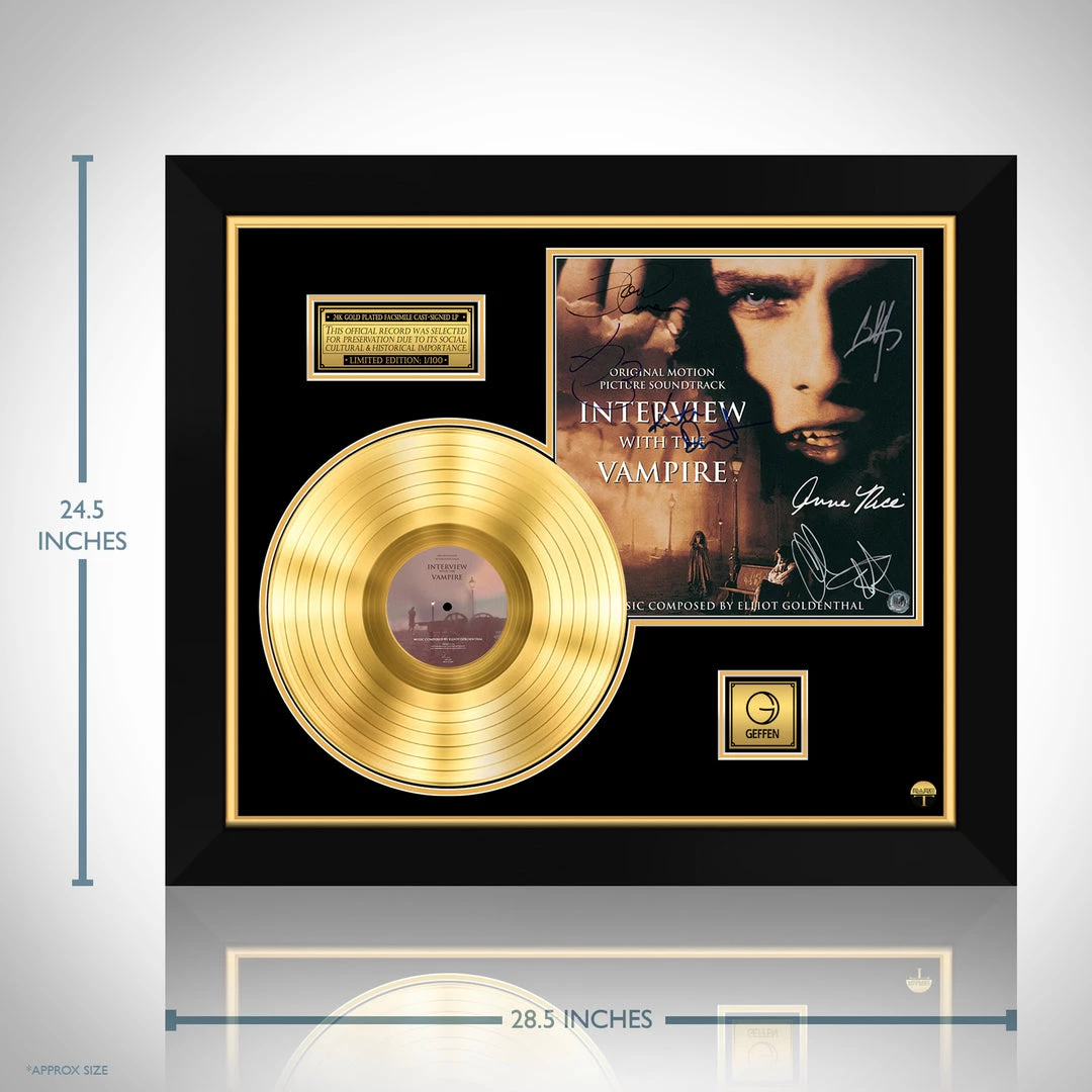Pay homage to one of the most iconic movie of all time, Interview with the Vampire , with this gallery-framed, officially licensed, limited edition facsimile of the Hand-Signed Original Motion Picture Soundtrack LP Cover originally signed by Brad Pitt, Christian Slater, Tom Cruise, Antonio Banderas, Kristen Dunts & Anne Rice , of which is strictly limited to 100 units Worldwide, and has been approved and numbered accordingly.