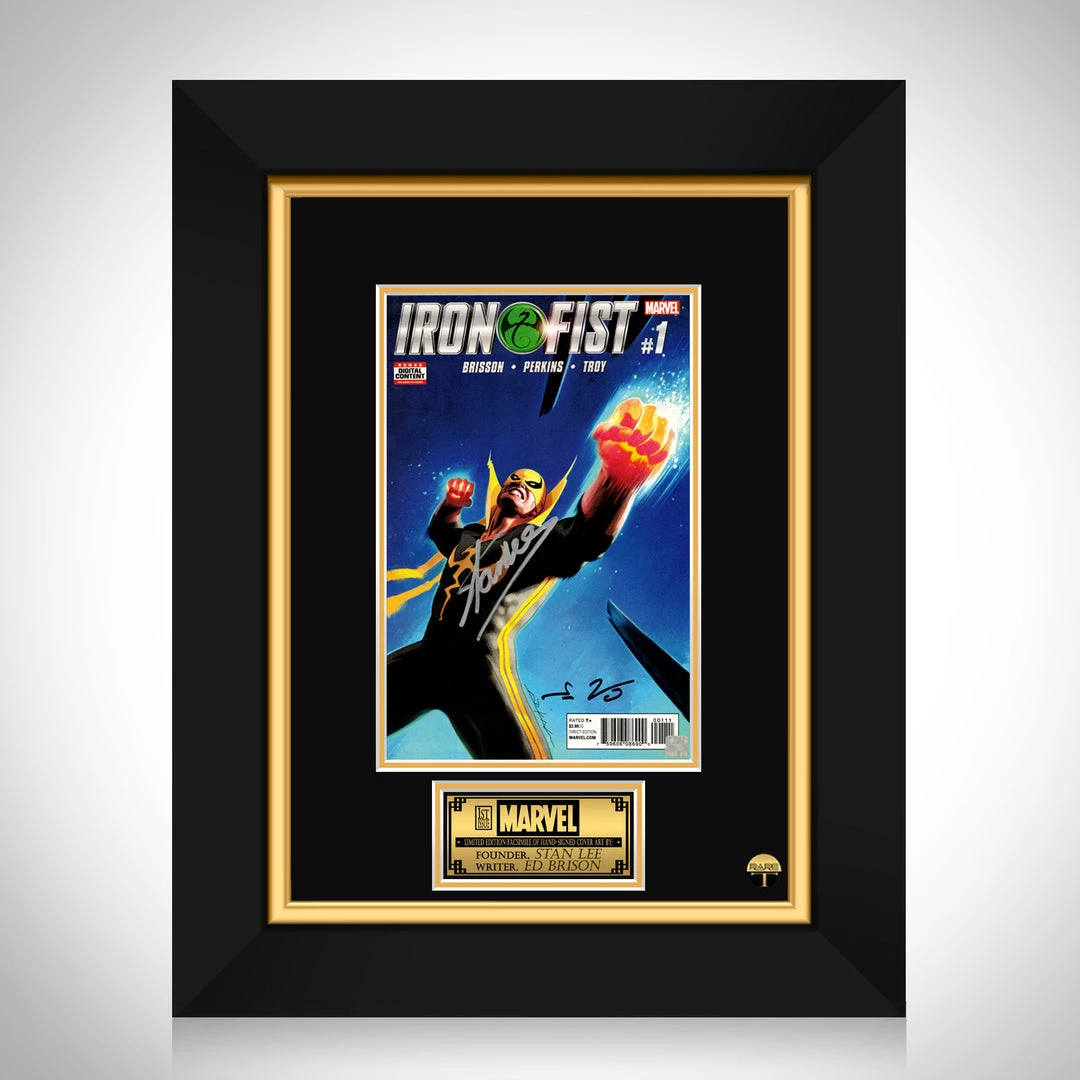 Pay homage to Iron Fist, with this gallery-framed, officially licensed, limited edition facsimile of hand-signed Avengers Initiative #1 Comic Book Cover Art, originally signed by writer Ed Brisson & Marvel Co-Founder & former executive producer of all Marvel Movies. the legendary, late great Stan Lee, of which is strictly limited to 100 units Worldwide, and has been approved and numbered accordingly.