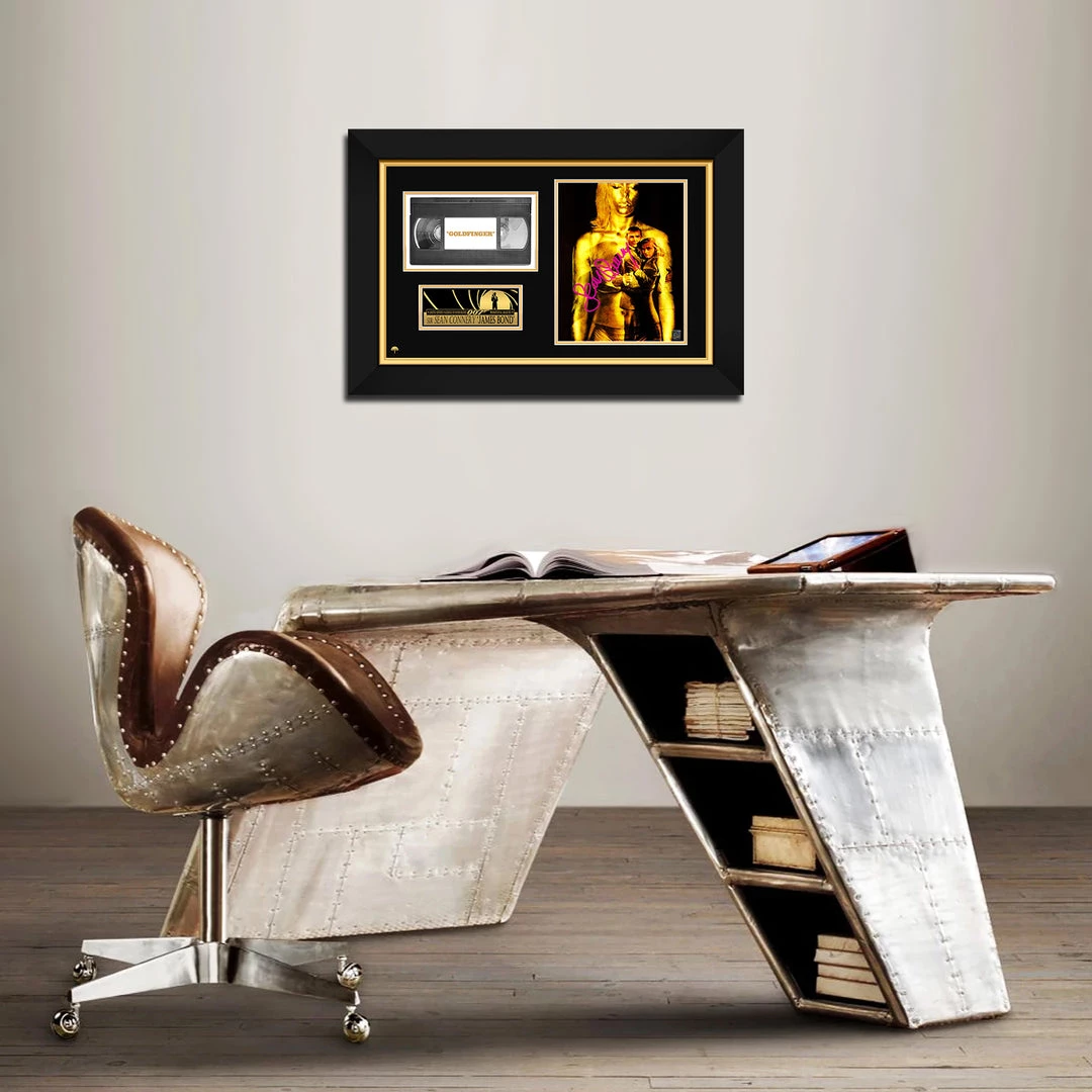 — Collectible James Bond Goldfinger facsimile of hand-signed movie photo & VHS custom frame.