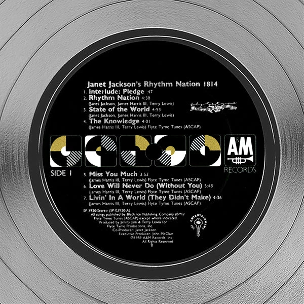 Pay homage to one of the most iconic American singer, songwriter, of all time Janet Jackson , with this gallery-framed, authentic A&M Records fully licensed facsimile of the official Hand-Signed Platinum Plated LP Record and LP Cover Rhythm Nation 1814 Originally signed by Janet Jackson , of which is strictly limited to 100 units Worldwide and has been approved and numbered accordingly.