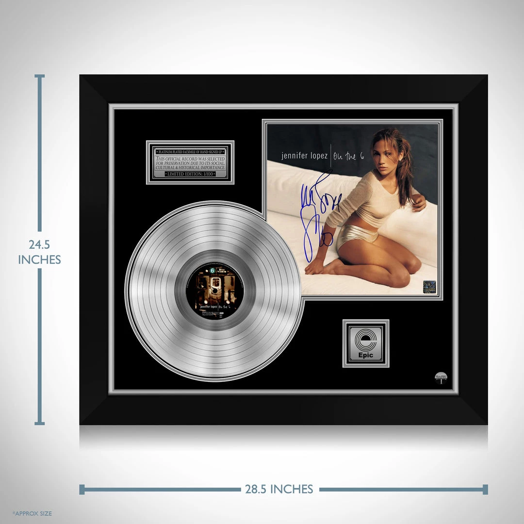 Pay homage to Jennifer Lopez , with this gallery-framed, authentic Epic Records fully licensed facsimile of the official Hand-Signed Platinum LP Record and EP Cover On The 6 Originally signed by Jennifer Lopez , of which is strictly limited to 100 units Worldwide and has been approved and numbered accordingly.