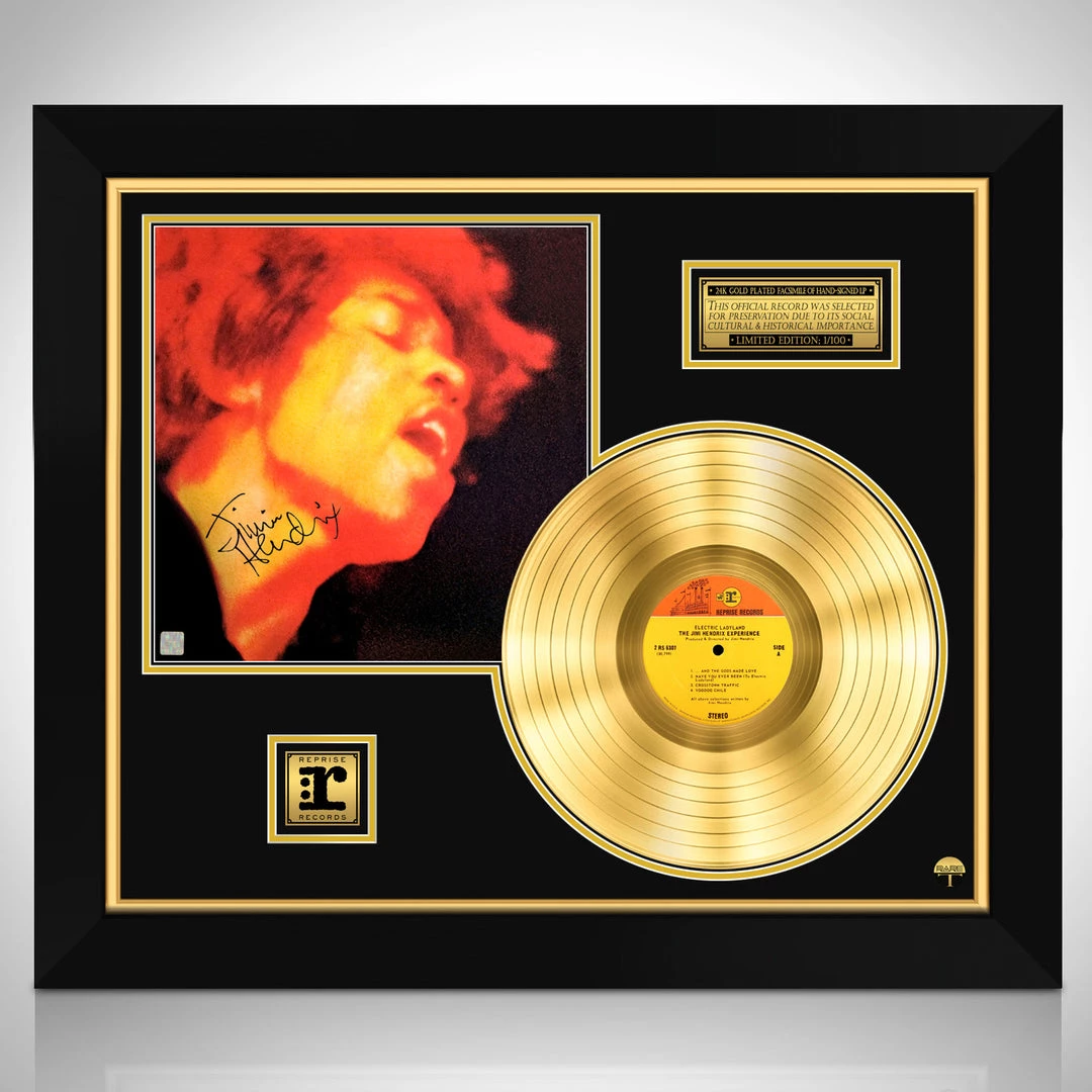 Æ’?? Collectible The Jimi Hendrix Experience Electric Ladyland facsimile of hand-signed 24k Gold Plated LP Custom Frame