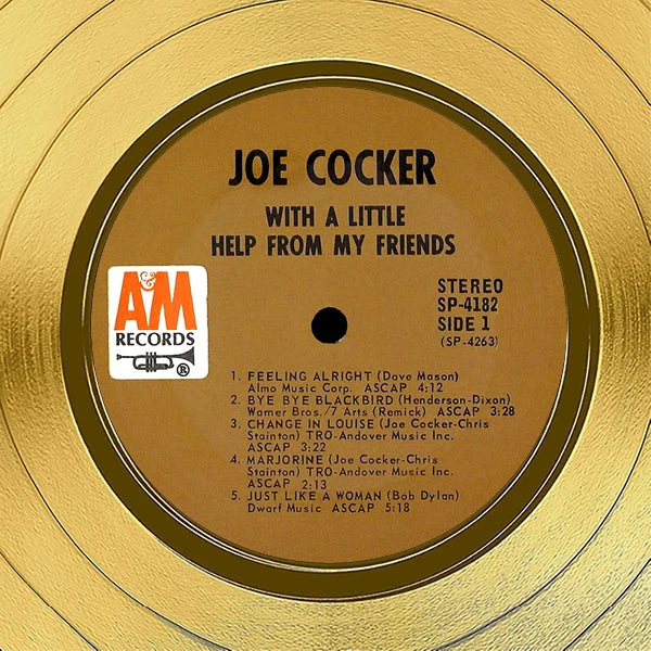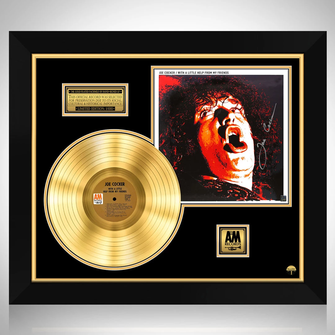 Pay homage to one of the most iconic English singer of all time Joe Cocker , with this gallery-framed, authentic AM Records fully licensed facsimile of the official Hand-Signed 24K Gold LP Record and LP Cover With a little help from Friends Originally signed by Joe Cocker , of which is strictly limited to 100 units Worldwide and has been approved and numbered accordingly.