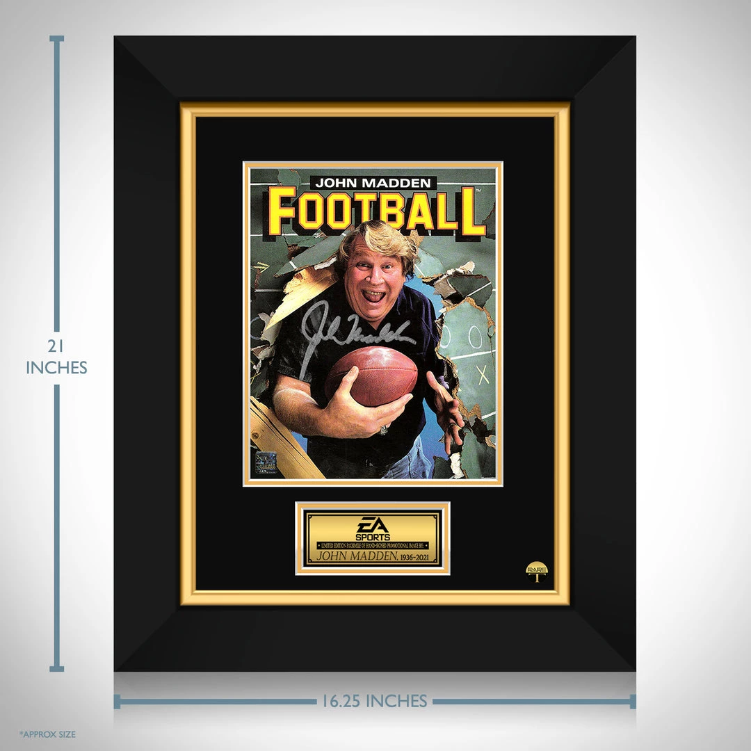 Pay homage to the late, legendary player, coach and commentator John Madden and the epic video game with this gallery-framed, officially licensed, limited edition facsimile of hand-signed photo, originally signed by John Madden, of which is strictly limited to 100 units Worldwide, and has been approved and numbered accordingly.
