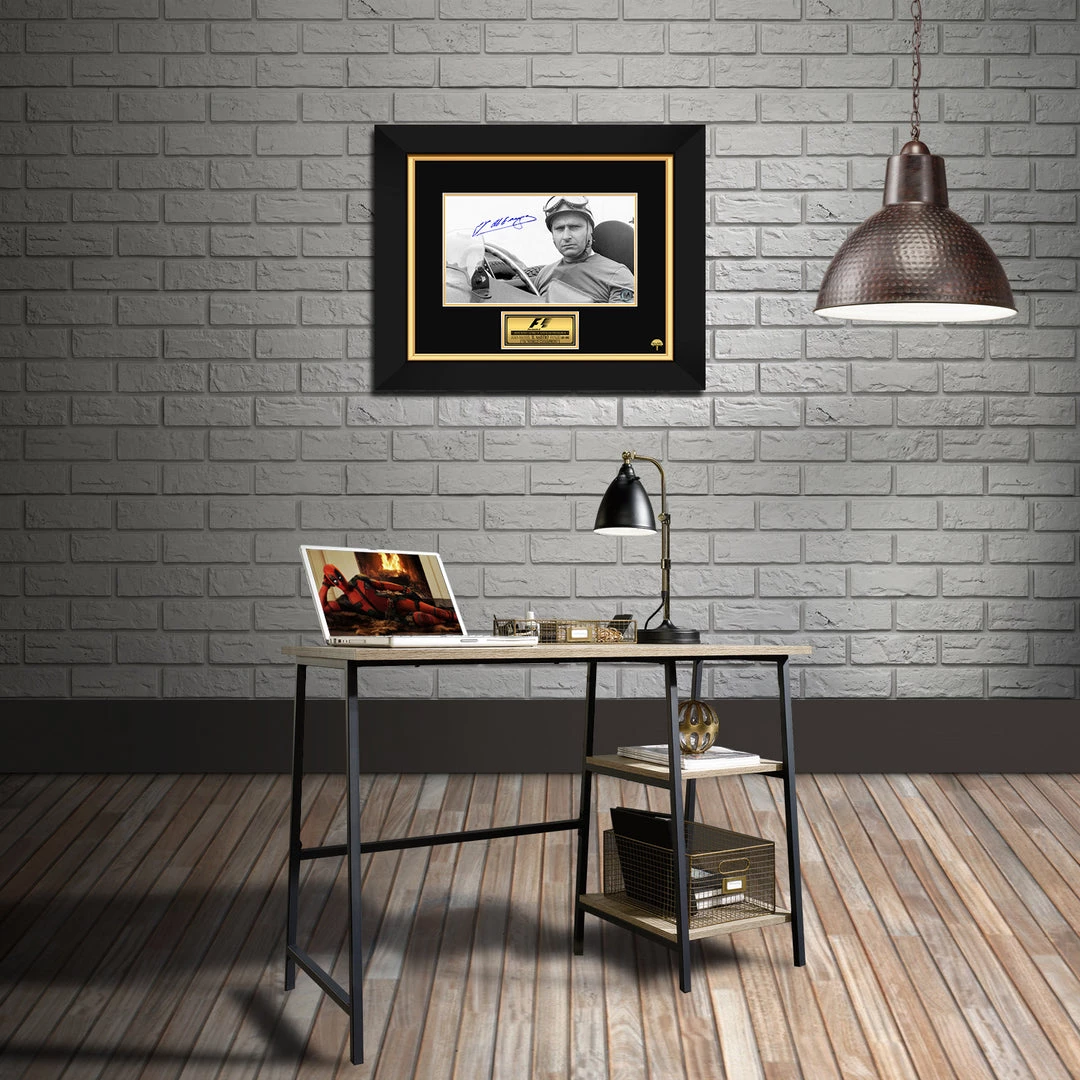 — Collectible Juan Manuel Fangio facsimile photo of original Hand-Signed photo custom frame.