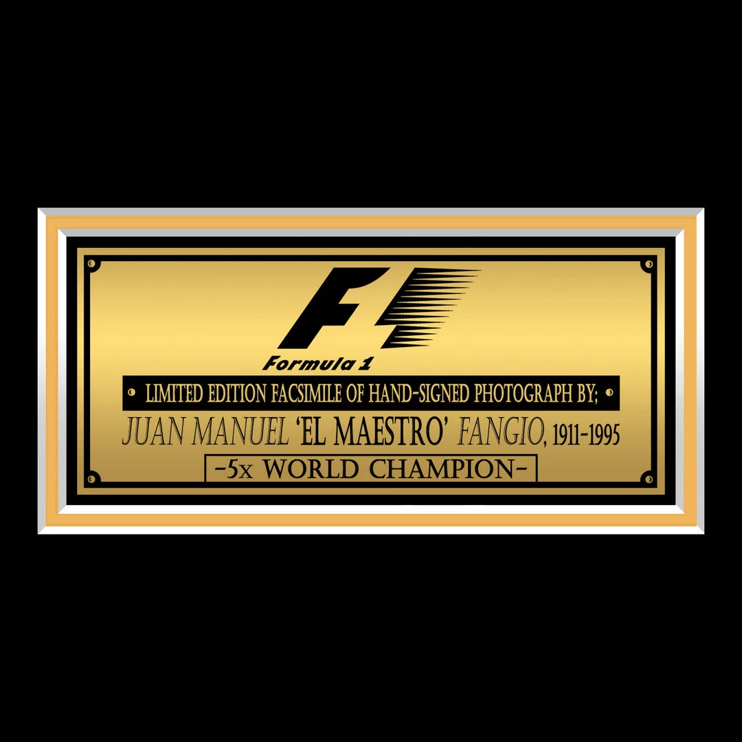 Pay homage to Juan Manuel Fangio, with this gallery-framed, officially licensed, limited edition facsimile of the Hand-Signed photo, originally signed by Juan Manuel Fangio of which is strictly limited to 100 units Worldwide, and has been approved and numbered accordingly.