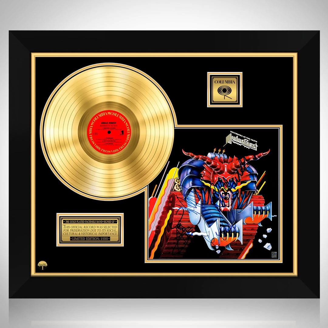 Pay homage to one of the most iconic English heavy metal band of all time Judas Priest , with this gallery-framed, authentic Columbia Records fully licensed facsimile of the official Hand-Signed 24K Gold LP Record and LP Cover Defenders of the Faith Originally signed by Rob Halford, Dave Holland, K. K. Downing & Ian Hill , of which is strictly limited to 100 units Worldwide and has been approved and numbered accordingly.