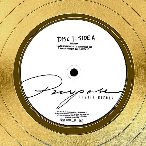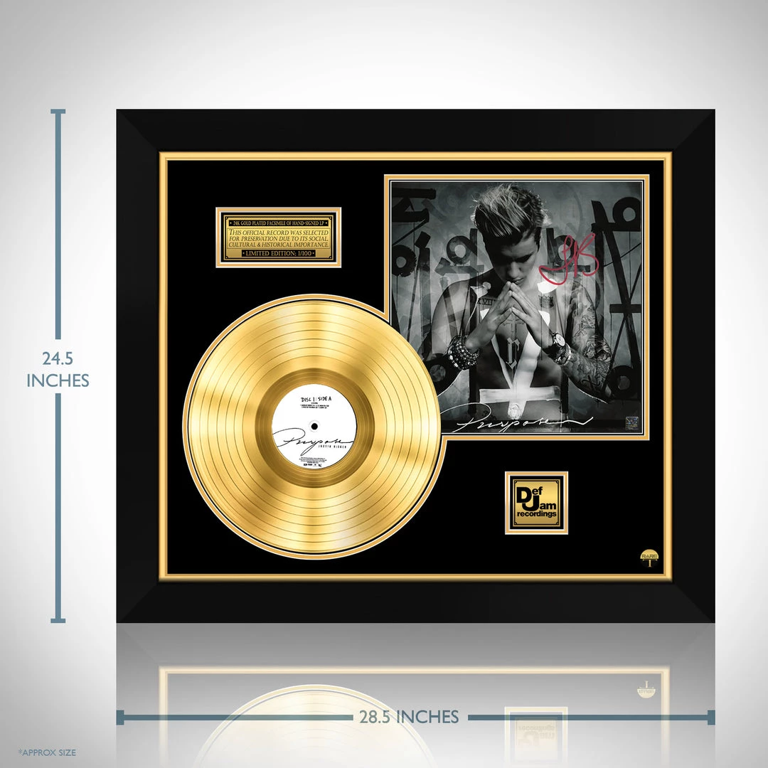 Pay homage to Justin Bieber, with this gallery-framed, authentic Def Jamย Records fully licensed facsimile of the official Hand-Signed 24K Gold LP Record and LP Cover Purposeย ย Originally signed by Justin Bieberย ,ย of which is strictly limited toย 100 units Worldwideย and has been approved and numbered accordingly.