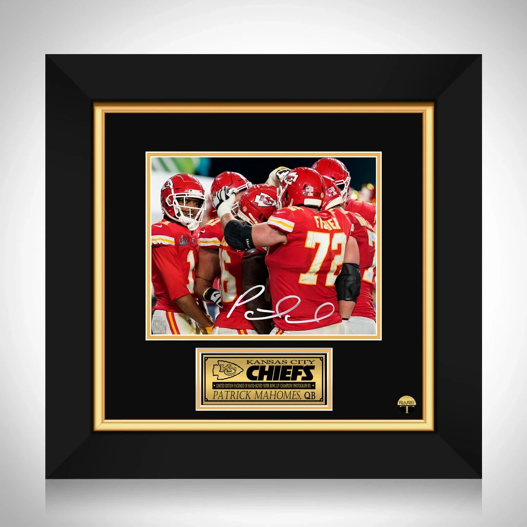 Pay homage to the Super Bowl LIV winning team, the Kansas City Chief’s and to star quarterback Patrick Mahomes, with this gallery-framed, officially licensed, limited edition facsimile of the Hand-Signed photo, originally signed by Super Bowl champion, Patrick Mahomes, of which is strictly limited to 100 units Worldwide, and has been approved and numbered accordingly.
