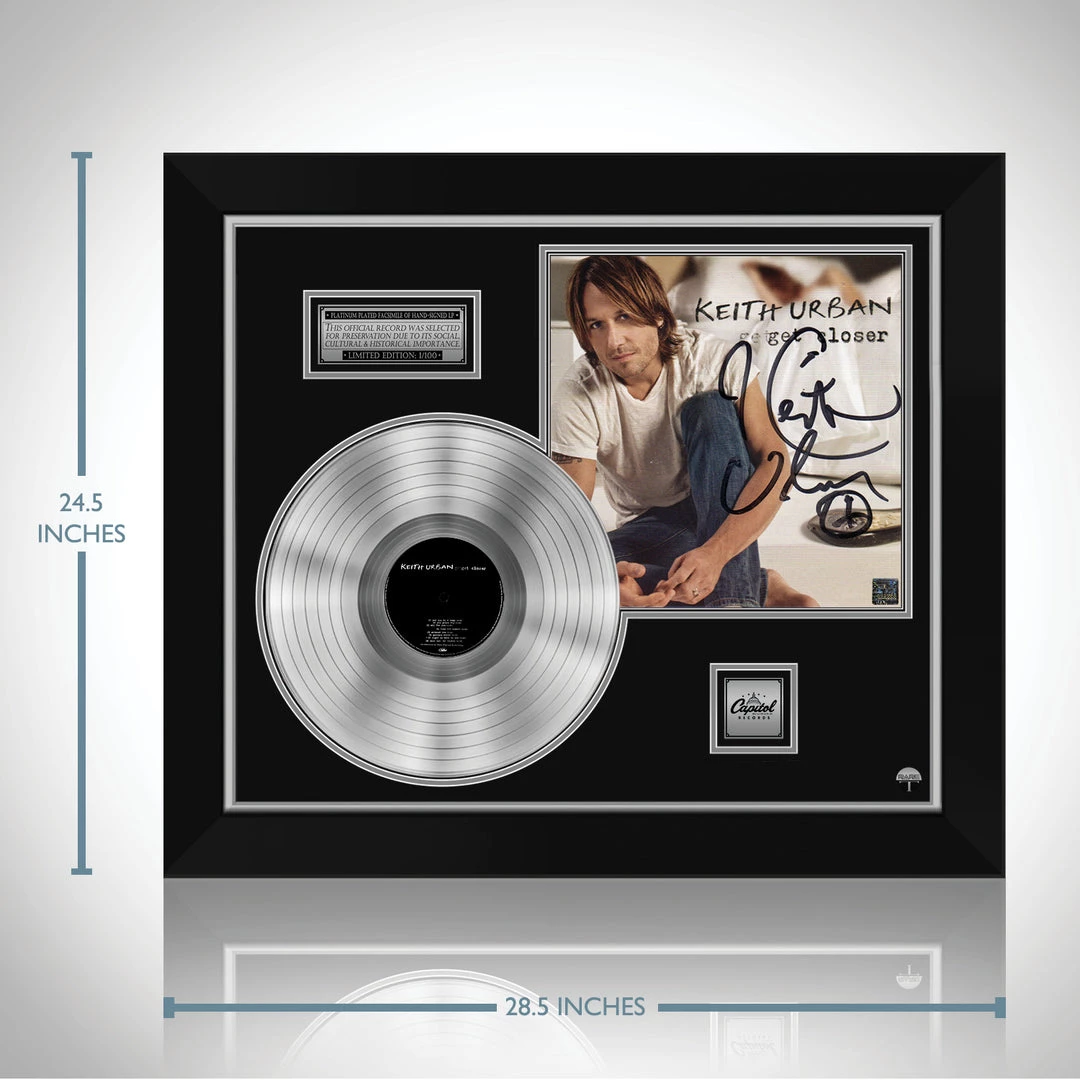 Pay homage to one of the best and most influential musical artists of all time, Keith Urban, with this gallery-framed, authentic, Capitol Records fully licensed facsimile of the official Hand-Signed Platinum Plated LP Record and LP Cover โนยฏยจGet Closer, originally signed by Keith Urban. of which is strictly limited to 100 units Worldwide and has been approved and numbered accordingly.