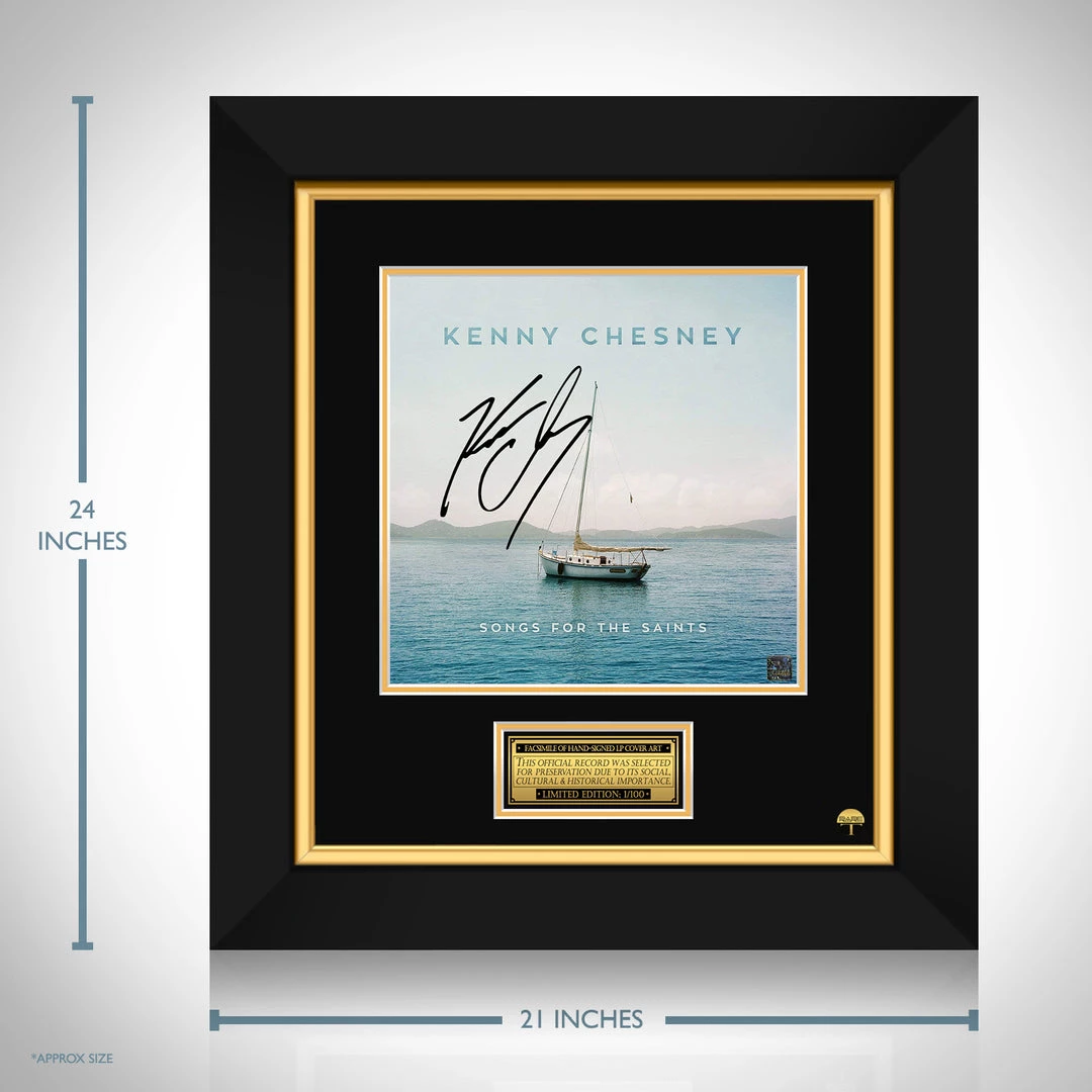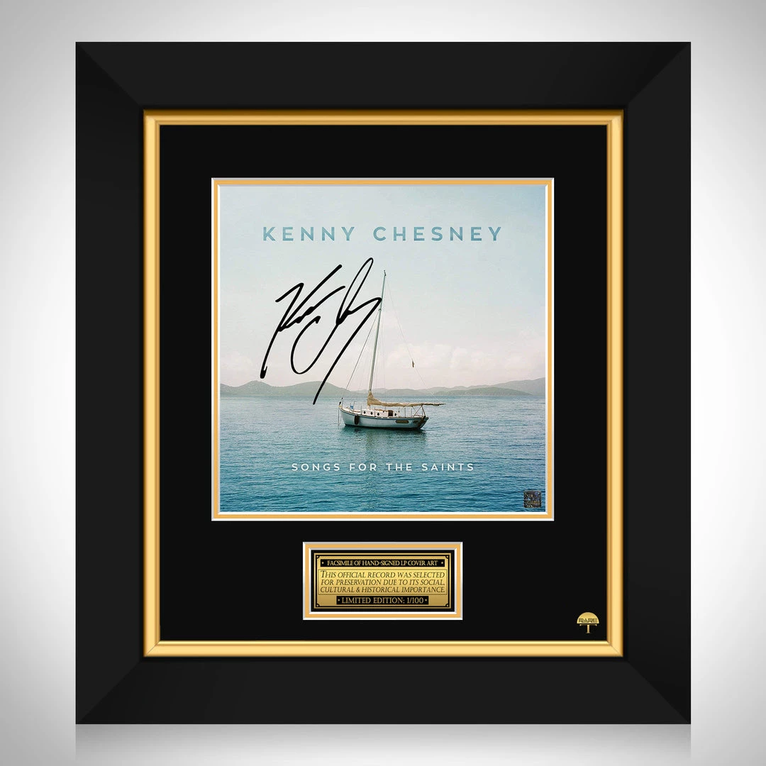 Pay homage to one of the most iconic American country music singer, songwriter of all time, Kenny Chesney , with this gallery-framed, officially licensed, limited edition facsimile of the Hand-Signed Song for the Saints LP Cover originally signed by Kenny Chesney , of which is strictly limited to 100 units Worldwide, and has been approved and numbered accordingly.