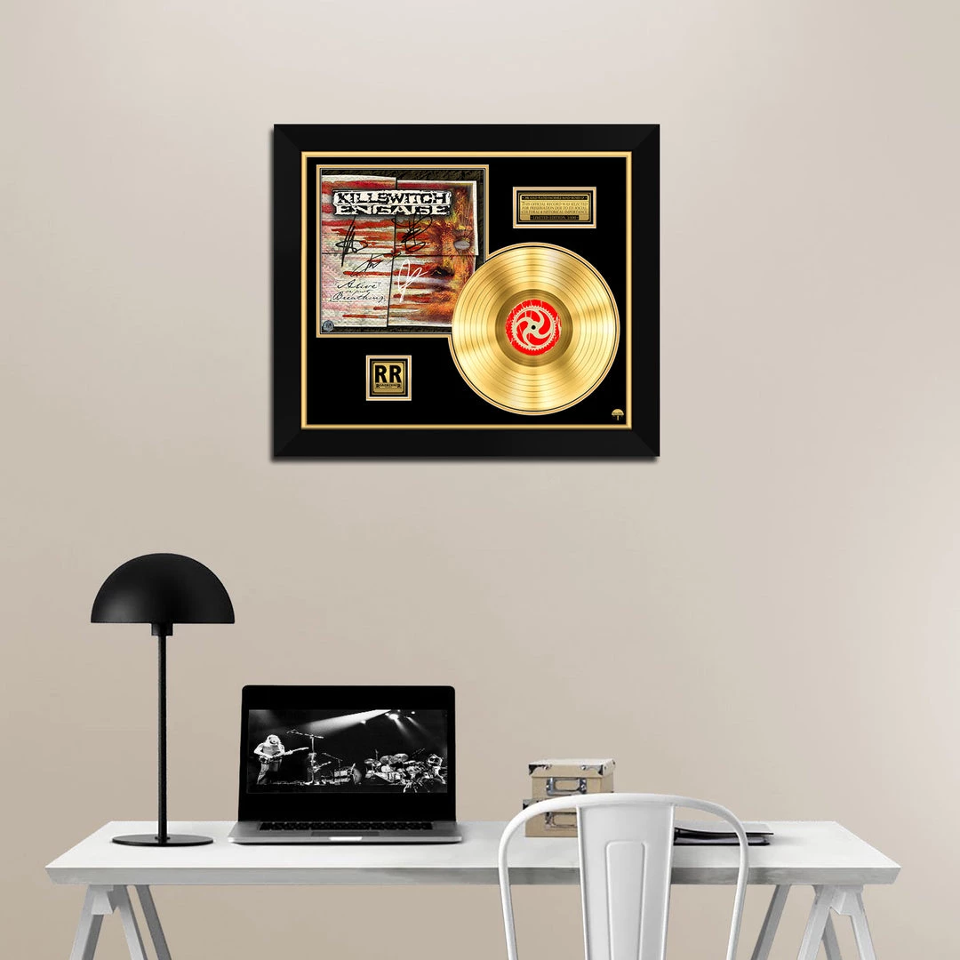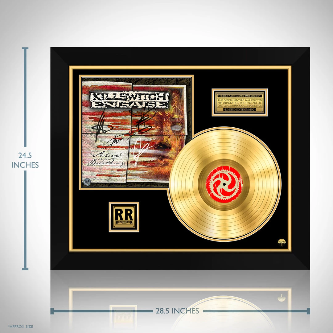 Pay homage to one of the most iconic American metalcore band of all time Killswitch Engage , with this gallery-framed, authentic Roadrunner Records fully licensed facsimile of the official Hand-Signed 24K Gold LP Record and LP Cover Alive or just breathing Originally signed by Jesse Leach, Joel Stroetzel, Mike D’Antonio & Adam Dutkiewicz , of which is strictly limited to 100 units Worldwide and has been approved and numbered accordingly.