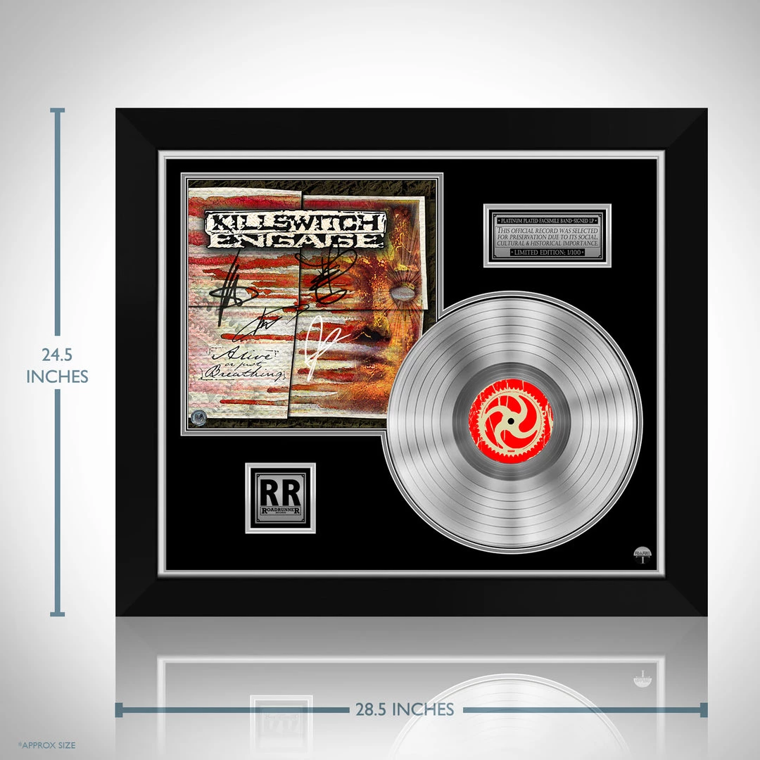 Pay homage to one of the most iconic American metalcore band of all time Killswitch Engage , with this gallery-framed, authentic Roadrunner Records fully licensed facsimile of the official Hand-Signed Platinum Plated LP Record and LP Cover Alive or just breathing Originally signed by Jesse Leach, Joel Stroetzel, Mike D’Antonio & Adam Dutkiewicz , of which is strictly limited to 100 units Worldwide and has been approved and numbered accordingly.