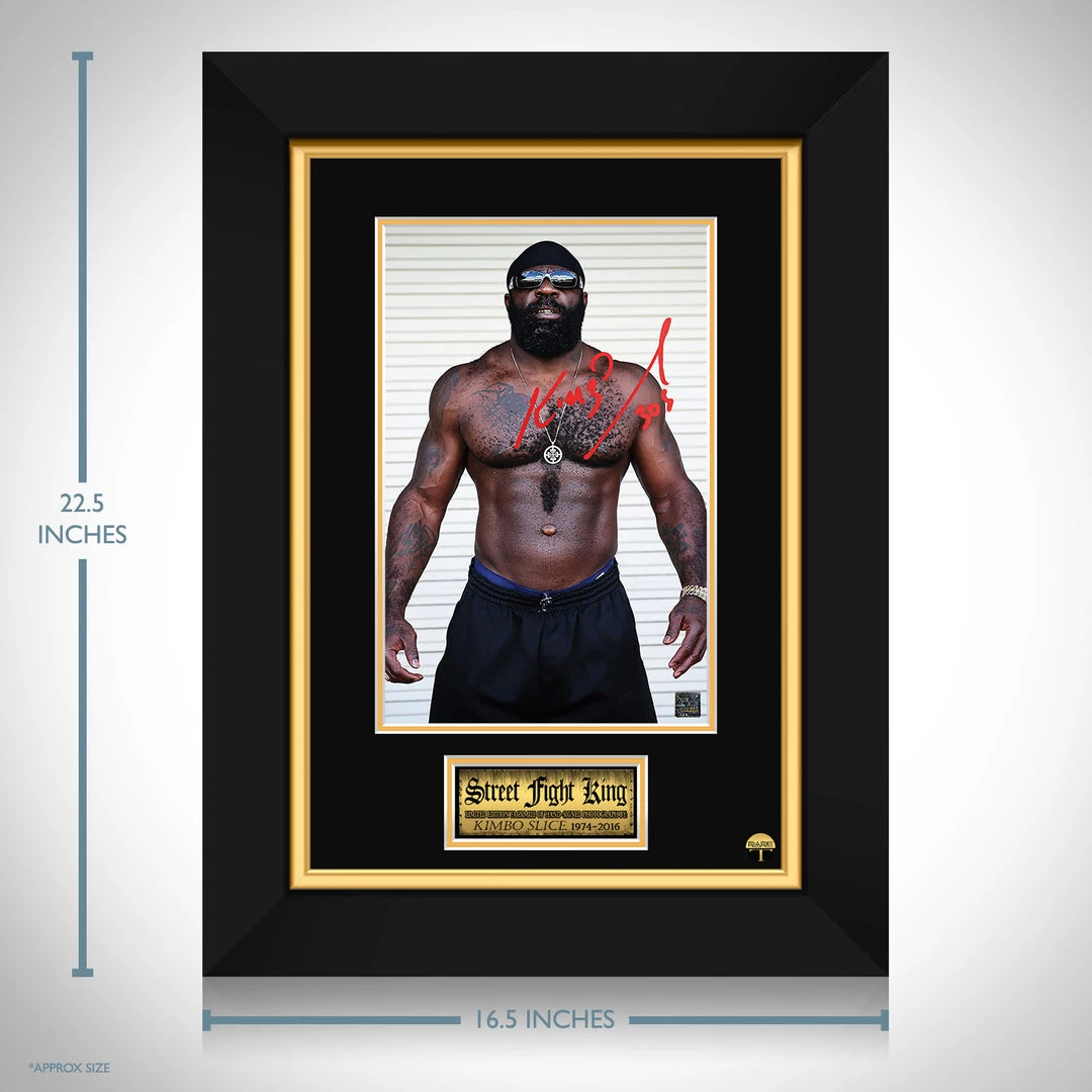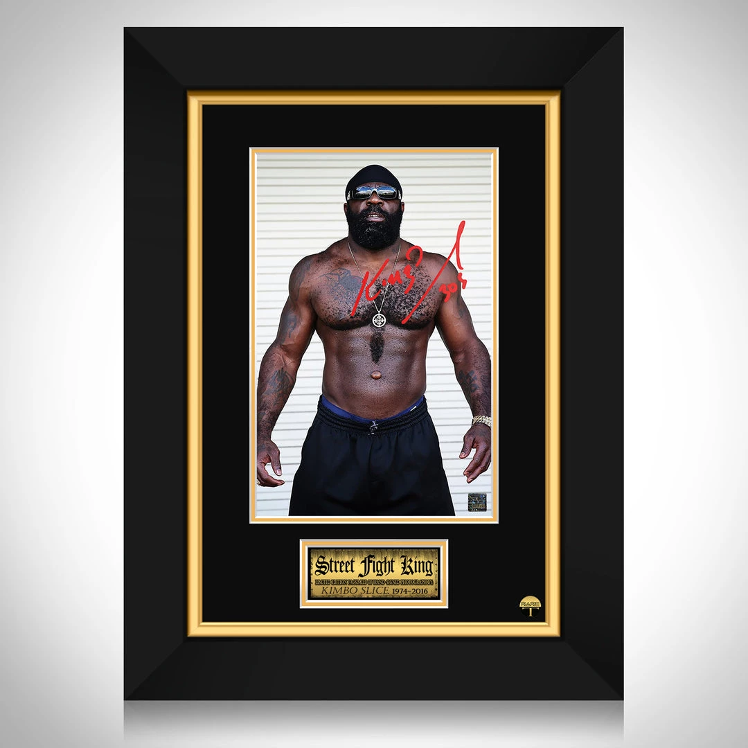 Pay homage to Kimbo Slice, with this gallery-framed, officially licensed, limited edition facsimile of hand-signed photo, originally signed by ‘Street Fight King’ Kimbo Slice, of which is strictly limited to 100 units Worldwide, and has been approved and numbered accordingly.