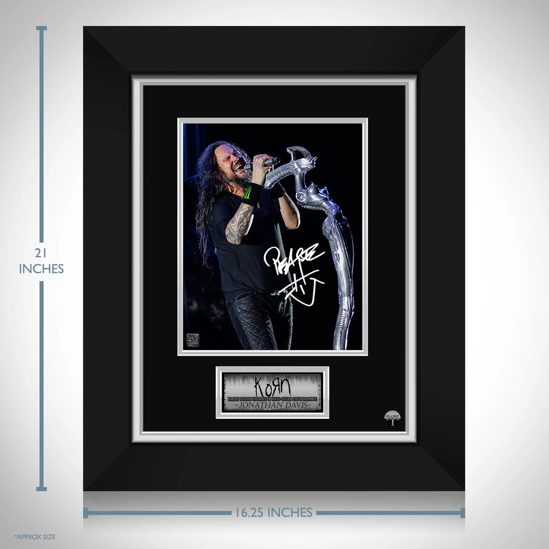 Pay homage to Kornย with this gallery-framed, officially licensed, limited edition facsimile of hand-signed photo, originally signed by Jonathan Davis, of which isย strictly limited to 100 units Worldwide, and has been approved and numbered accordingly.