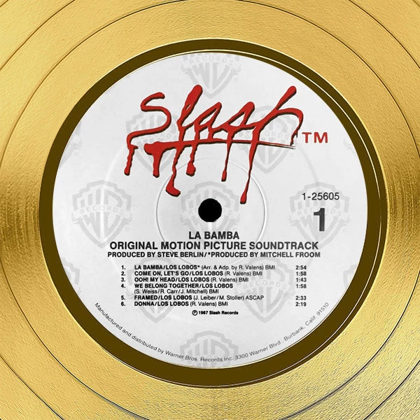 Pay homage to one of the most iconic movie of all time La Bamba , with this gallery-framed, authentic Warner Bros. Record fully licensed facsimile of the official Hand-Signed 24K Gold LP Record and LP Cover Original Motion Picture Soundtrack Originally signed by Lou Diamond Phillips, Esai Morales & Joe Pantoliano , of which is strictly limited to 100 units Worldwide and has been approved and numbered accordingly.