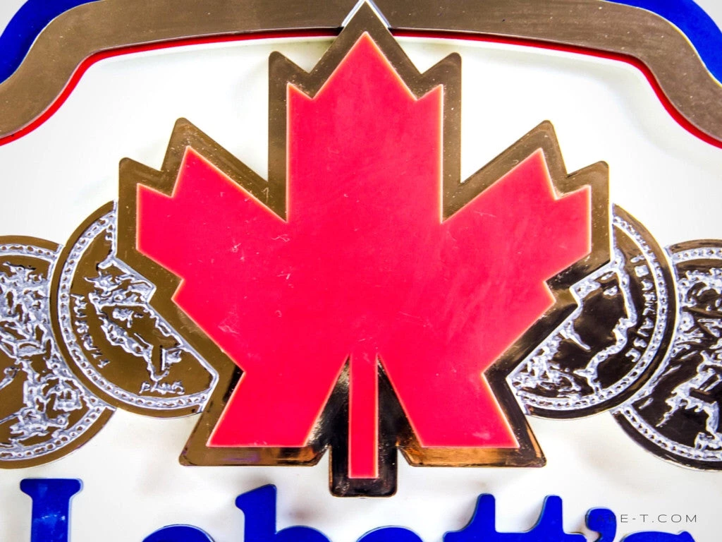 This Montreal original vintage hard plastic ‘Labatt’s GOLD Coins-Beer/Bière Canadian Leaf’ Bar/Pub/Tavern Sign/Advertisement has no markings so exact production date is unknown.