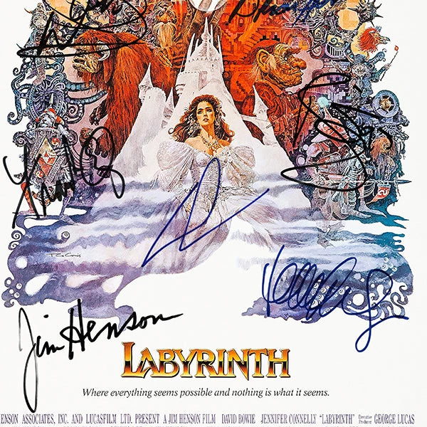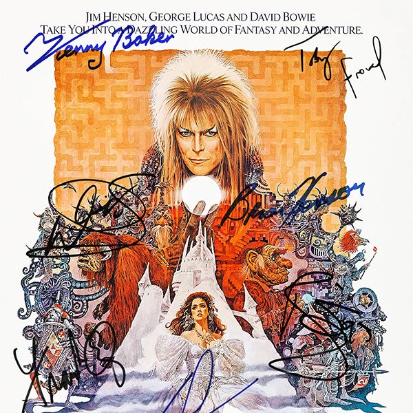 — Originally signed by Jim Henson, George Lucas, Jennifer Connelly, Brian Henson, Kenny Baker, David Bowie, Toby Froud, Frank OZ and Warwick Davis Â