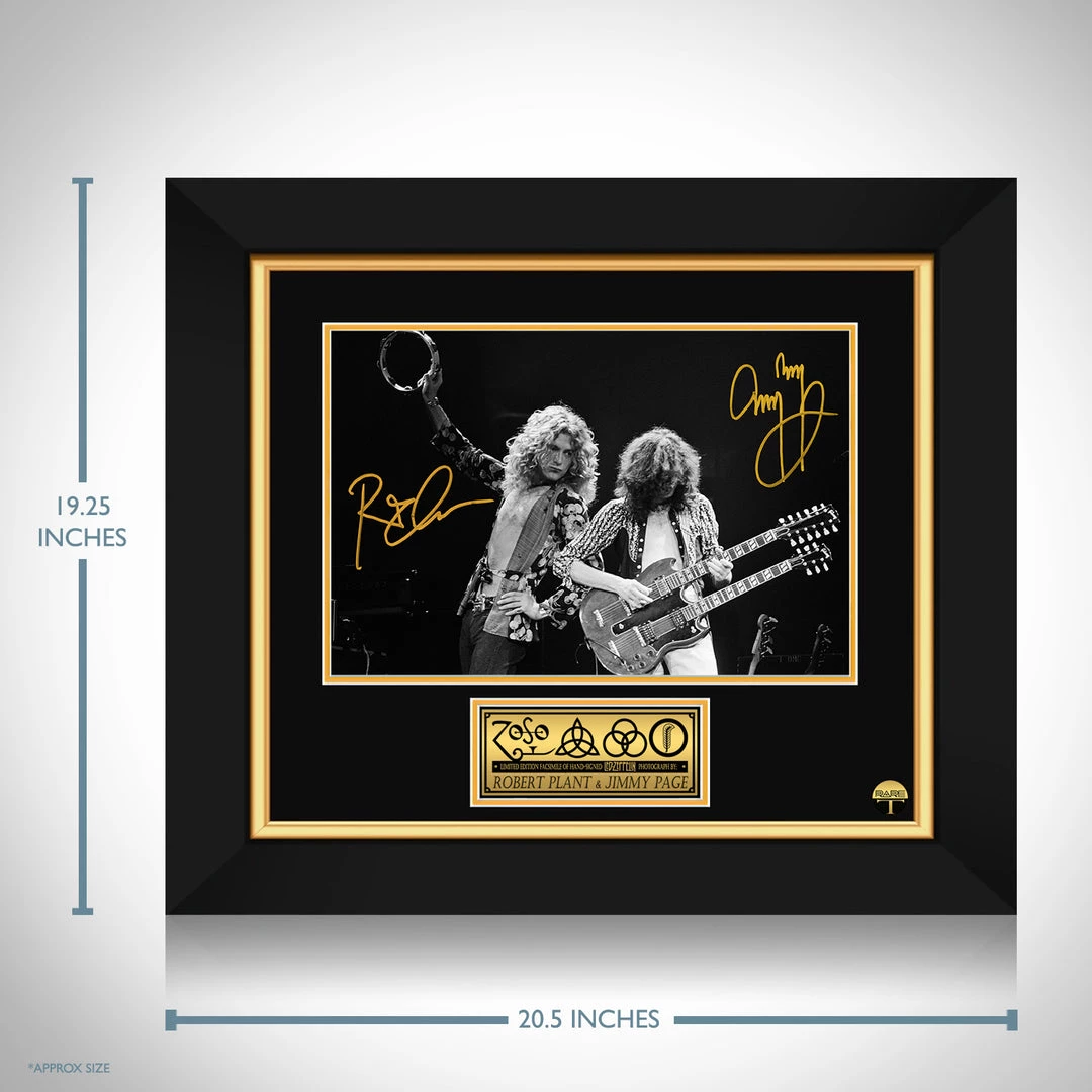 Pay homage to Led Zeppelin, with this gallery-framed, officially licensed, limited edition facsimile of hand-signed promo photo, originally signed by Jimmy Page & Robert Plant, of which is strictly limited to 100 units Worldwide, and has been approved and numbered accordingly.