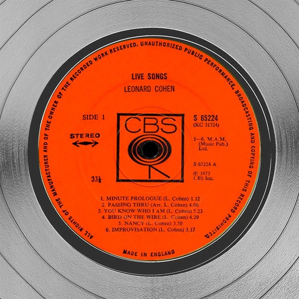 ฦ?? Collectible Facsimile Leonard Cohen Live Platinum Plated LP Custom Frame