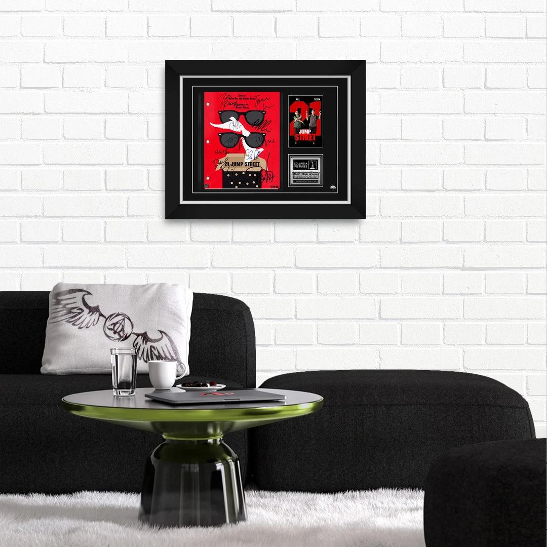 — Collector Grade Proprietary Exclusive VELVET TOUCH water/scratch resistant cover. — Collectible Facsimile of Original Hand-Signed 21 Jump Street (2012) movie Script Custom Frame.