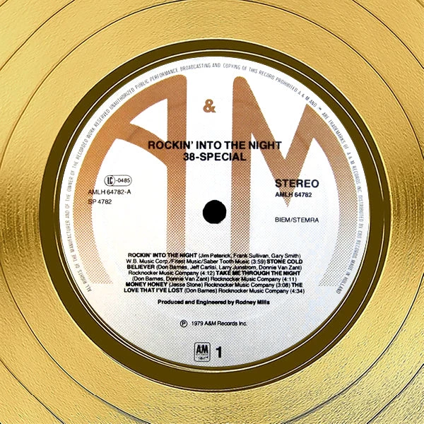 Pay homage to one of the most iconic American rock band of all time .38 Special , with this gallery-framed, authentic AM Records fully licensed facsimile of the official Hand-Signed Platinum Plated LP Record and LP Cover Rockin’into the night Originally signed by Donnie Van Zant, Don Barnes, Jeff Carlisi, Larry Junstrom, Steve Brookins & Jack Grondin , of which is strictly limited to 100 units Worldwide and has been approved and numbered accordingly.