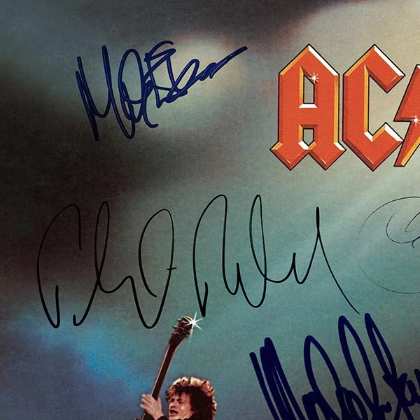 โ Originally Signed by Bon Scott, Angus Young, Malcolm Young, Mark Evans & Phil Rudd .