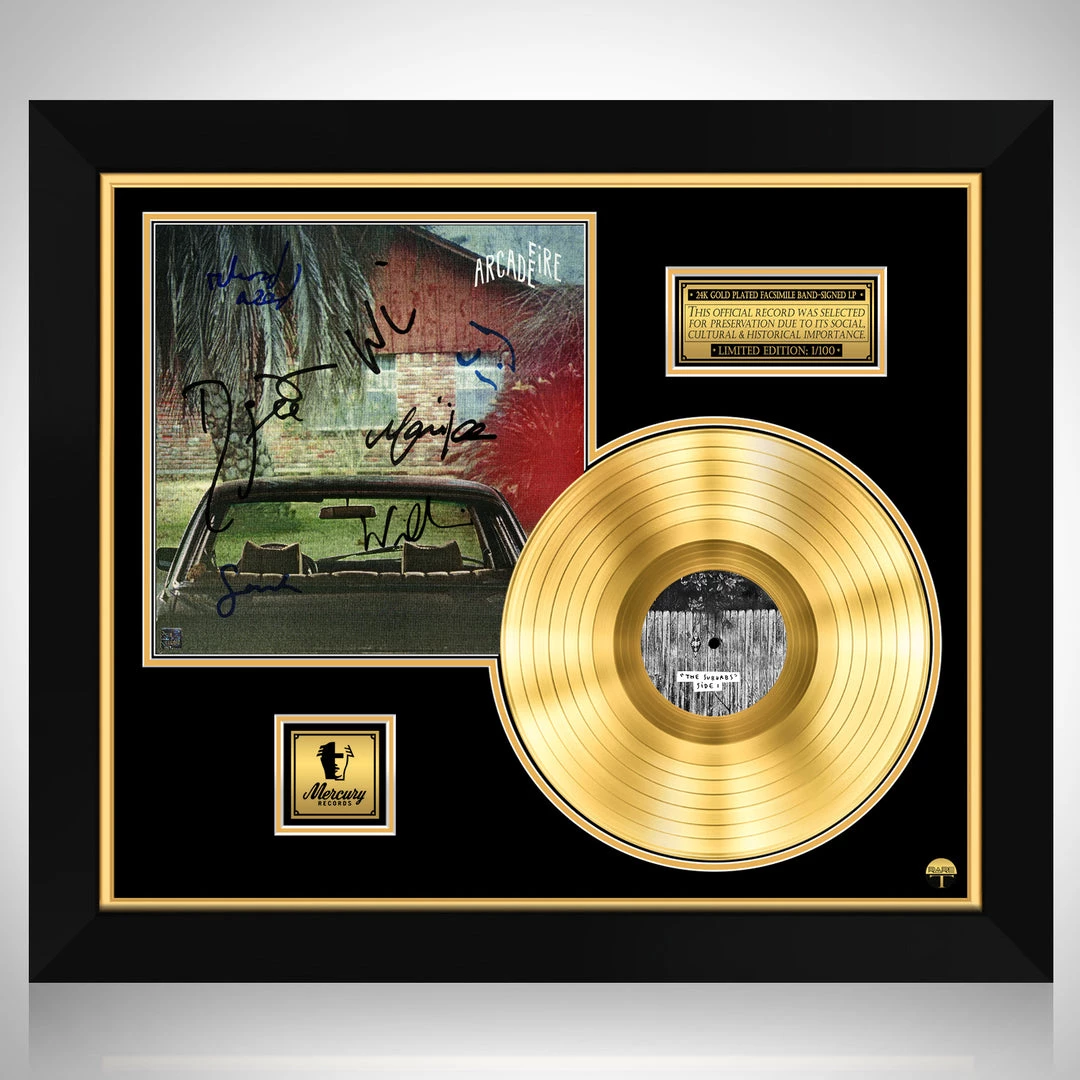 Pay homage to one of the most iconic Canadian indie rock band of all time Arcade Fire , with this gallery-framed, authentic Mercury Records fully licensed facsimile of the official Hand-Signed 24K Gold LP Record and LP Cover The Suburbs Originally signed by Will Butler, Win Butler, Rรฉgine Chassagne, Jeremy Gara, Tim Kingsbury, Sarah Neufeld & Richard Reed Parry , of which is strictly limited to 100 units Worldwide and has been approved and numbered accordingly.