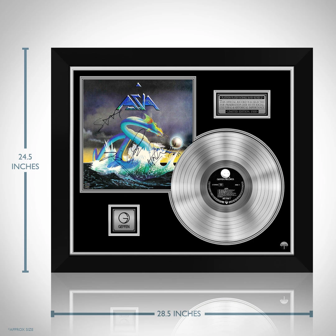 Pay homage to one of the most iconic English rock supergroup of all time Asia , with this gallery-framed, authentic Geffen Records fully licensed facsimile of the official Hand-Signed Platinum Plated LP Record and LP Cover Asia Originally signed by John Wetton, Geoff Downes, Steve, Howe & Carl Palmer , of which is strictly limited to 100 units Worldwide and has been approved and numbered accordingly.