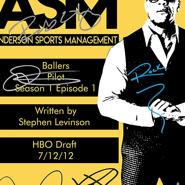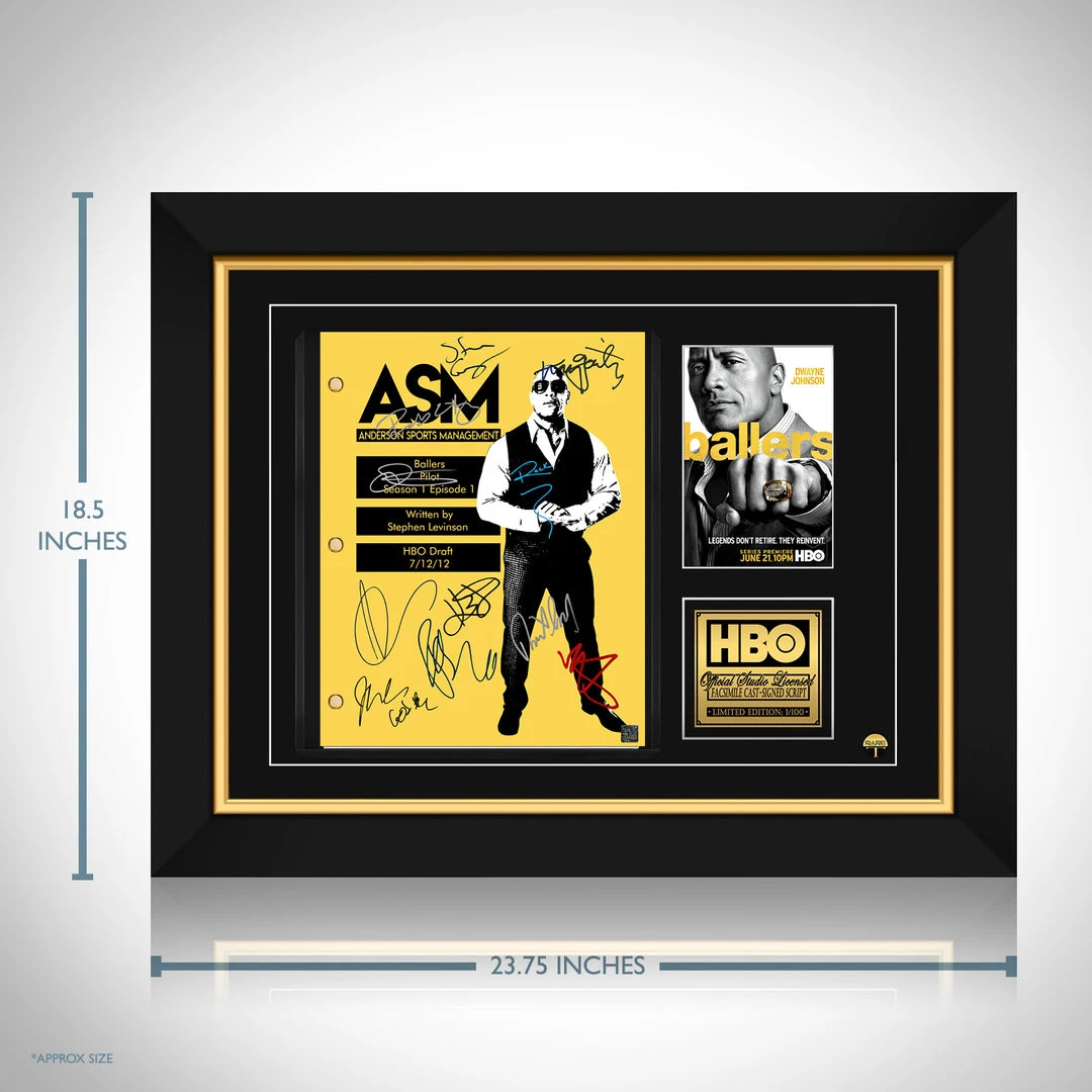 Pay homage to Ballers , with this HBO fully licensed facsimile of the official signed TV Series script, originally signed by actors Mark Wahlberg, Dwayne โThe Rockโ Johnson, John David Washington, Troy Garity, Omar Benson Miller, Rob Corddry, Richard Schiff, Kevin Durand, Russell Brand, Steve Guttenberg & Andy Garcia , of which is strictly limited to 100 units Worldwide and has been approved and numbered accordingly.