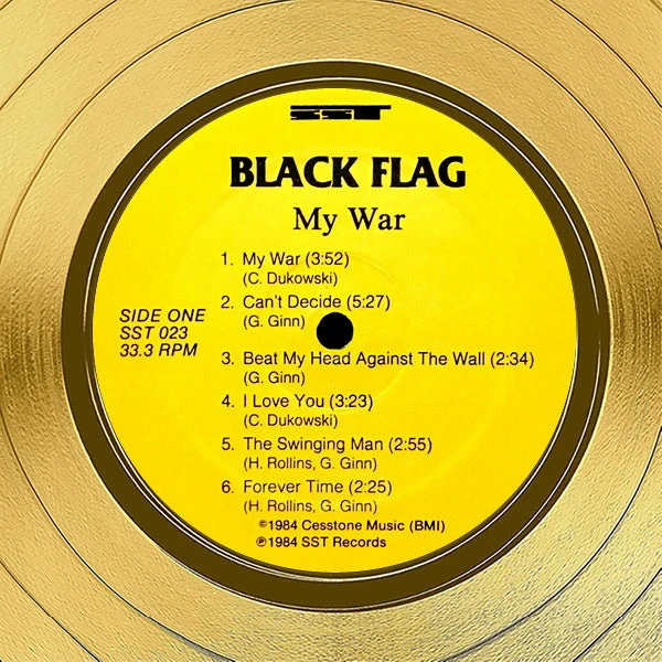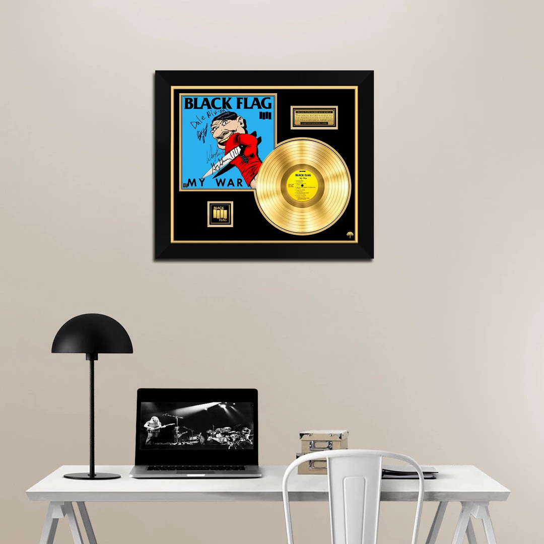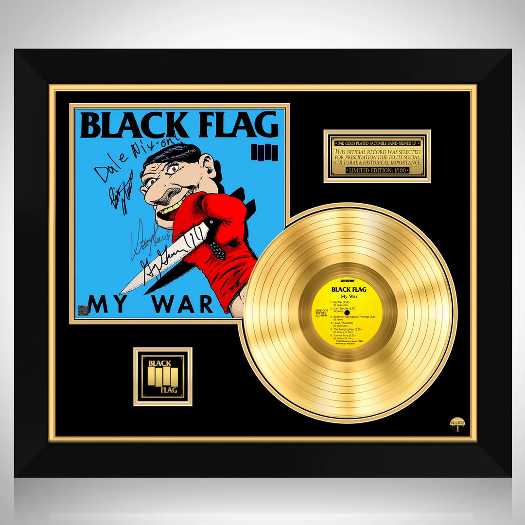 Pay homage to one of the most iconic American punk rock of all time Black Flag , with this gallery-framed, authentic SST Records fully licensed facsimile of the official Hand-Signed 24K Gold LP Record and LP Cover My War Originally signed by Henry Rollins, Greg Ginn, Dale Nixon & Bill Stevenson , of which is strictly limited to 100 units Worldwide and has been approved and numbered accordingly.