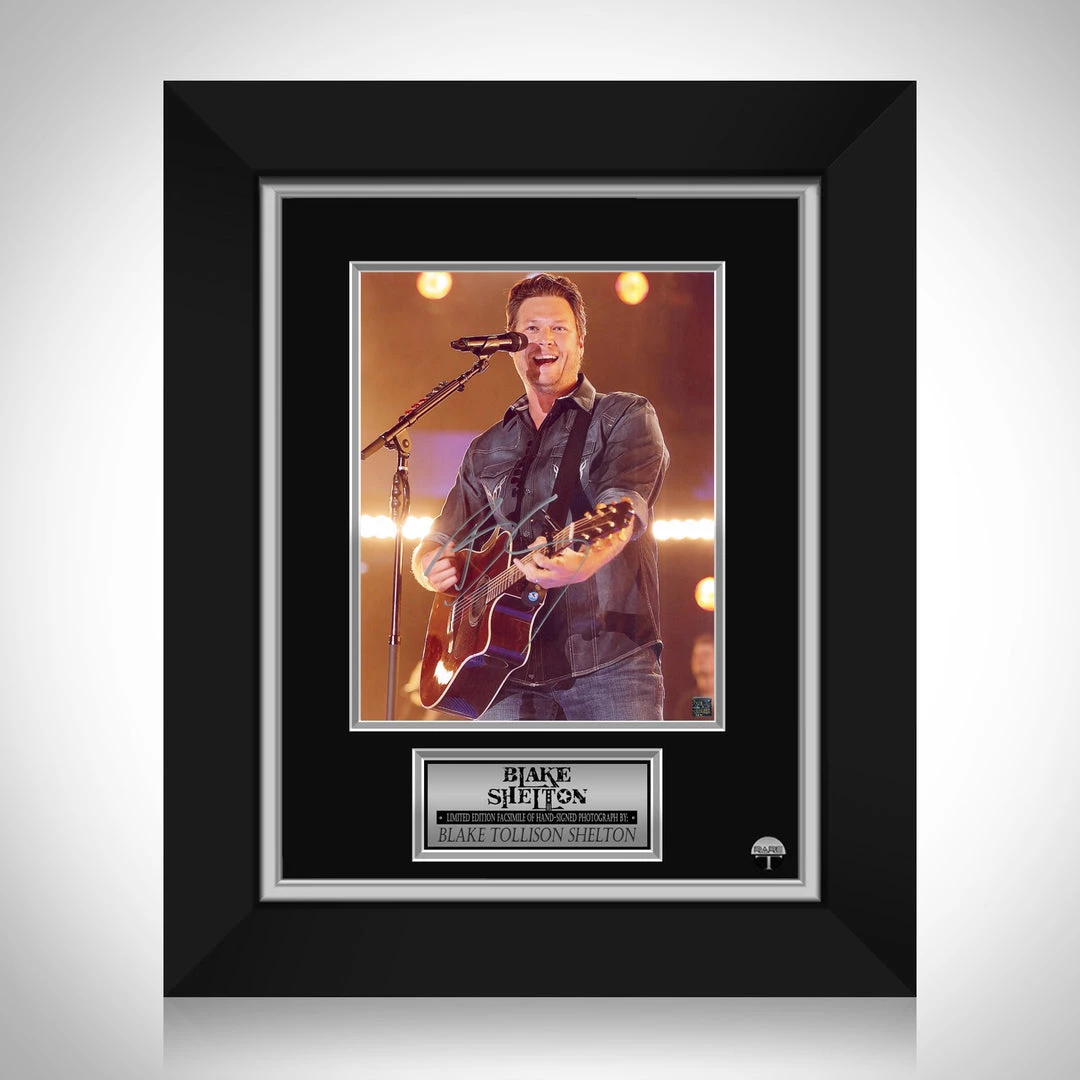 Pay homage to Blake Sheltonย with this gallery-framed, officially licensed, limited edition facsimile of hand-signed promo photo, originally signed by Blake Shelton, of which is strictly limited to 100 units Worldwide, and has been approved and numbered accordingly.