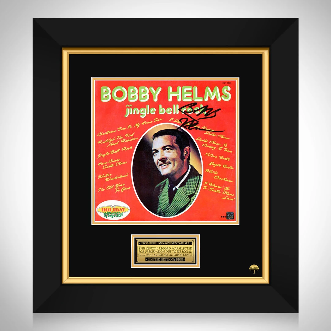 Pay homage to one of the most iconic American country music singer of all time, Bobby Helms , with this gallery-framed, officially licensed, limited edition facsimile of the Hand-Signed Jingle Bell Rock LP Cover originally signed by Bobby Helms , of which is strictly limited to 100 units Worldwide, and has been approved and numbered accordingly.
