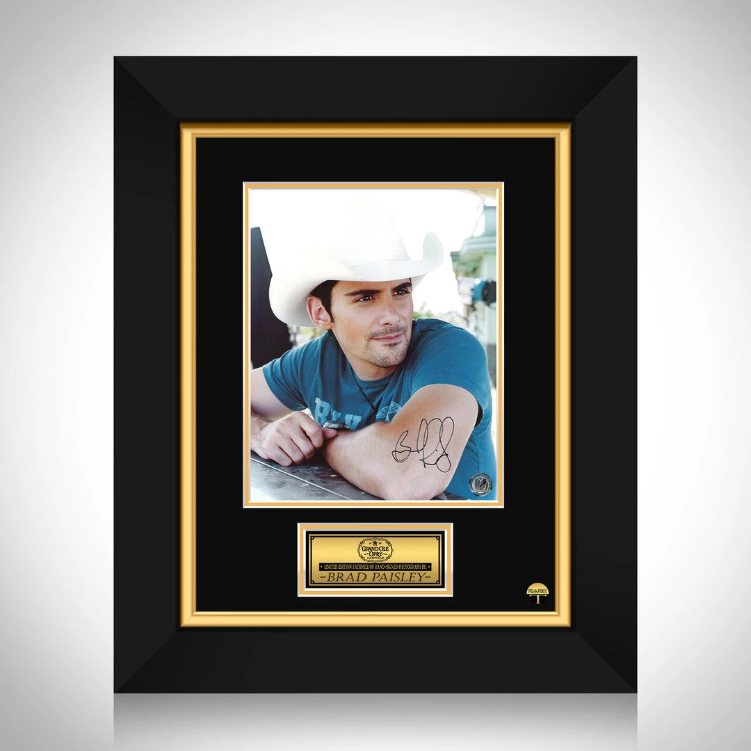 Pay homage to Brad Paisley with this gallery-framed, officially licensed, limited edition facsimile of hand-signed photo, originally signed by Brad Paisley, of which is strictly limited to 100 units Worldwide, and has been approved and numbered accordingly.