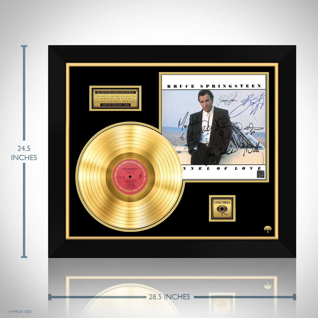 Pay homage to Bruce Springsteen & The E-Street Band, with this gallery-framed, authentic, Columbia Records fully licensed facsimile of the official Hand-Signed 24k Gold Plated LP Record and LP Cover ‘Tunnel of Love ‘ Originally signed by Bruce Springsteen, Roy Bittan, Nils Lofgren, Clarence Clemons, Patti Scialfa, Garry Tallent, Max Weinberg & Danny Federici, of which is strictly limited to 100 units Worldwide and has been approved and numbered accordingly.