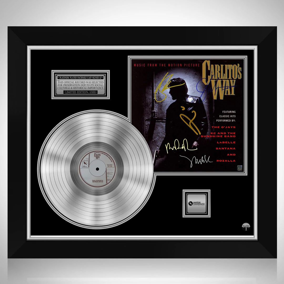 Pay homage to one of the most iconic movie of all time Carlito’s Way , with this gallery-framed, authentic Universal Pictures fully licensed facsimile of the official Hand-Signed Platinum Plated LP Record and LP Cover Soundtrack Originally signed by ‹¯¨Brian de Palma, Al Pacino, Sean Penn, John Leguizamo & Marc Anthony , of which is strictly limited to 100 units Worldwide and has been approved and numbered accordingly.