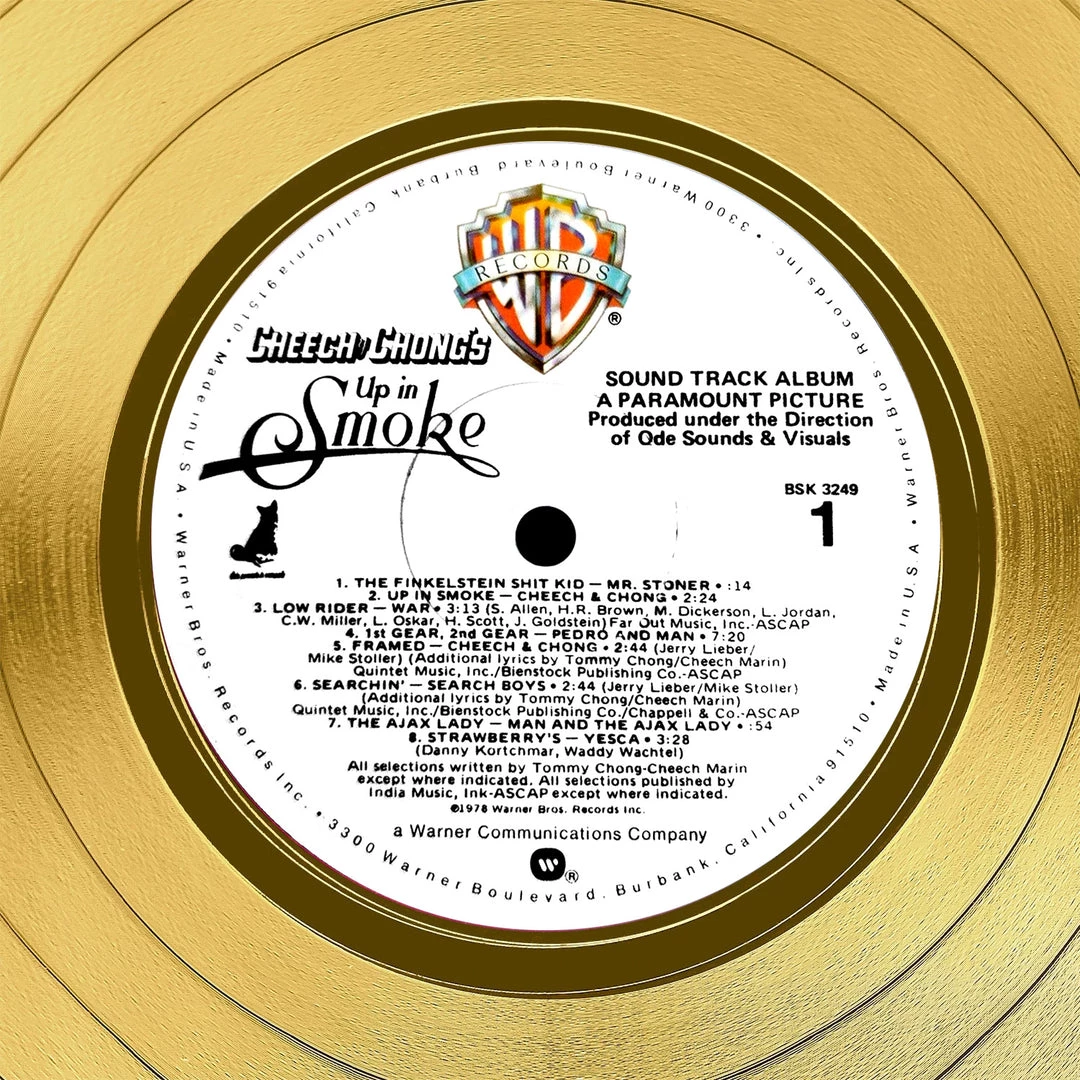 ฦ?? Collectible Cheech & Chong Up in Smoke Motion Picture Soundtrack facsimile of hand-signed 24k Gold Plated LP Custom Frame